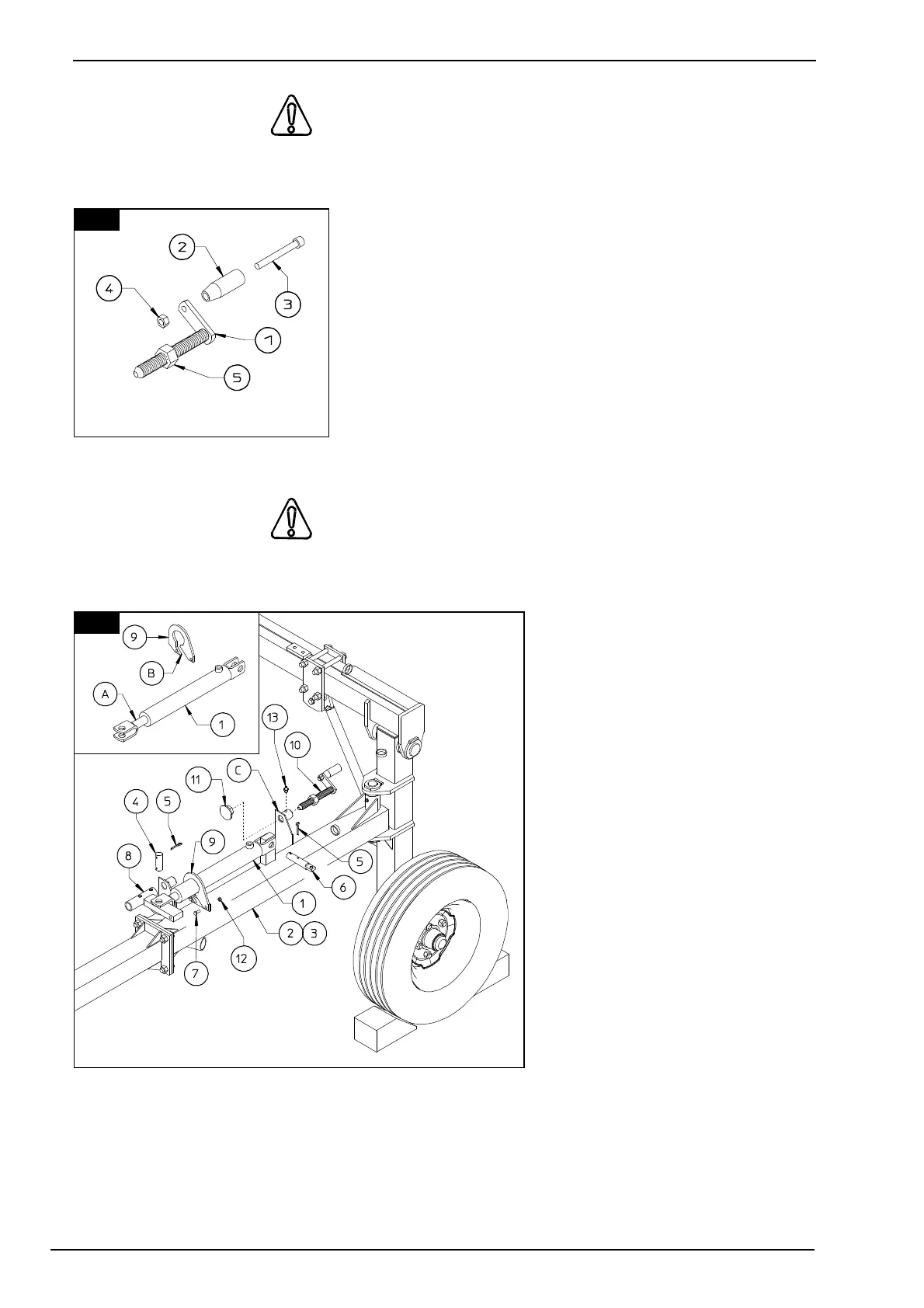 Attach cylinder 1 to sections 2 & 3 (LH - RH) and fasten it with pin 6 and split-pins 5. Fit the