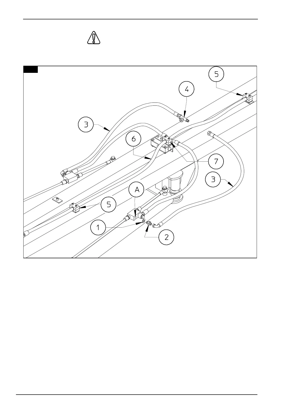 Continue to secure hose 6 using collars 5. Attach washer 1 and nipple 2 to hole A in cylinder