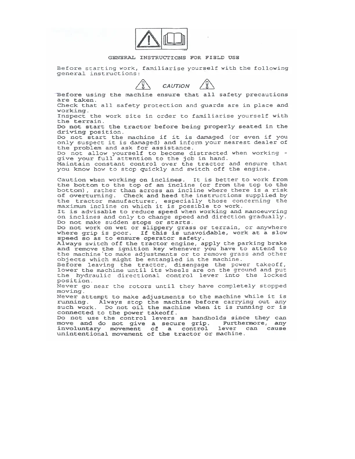 2) Switch off the engine, leaving the tractor in gear.