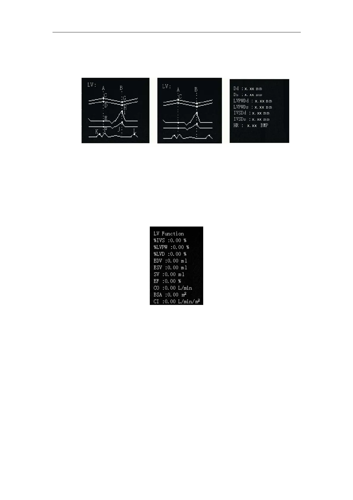 Calc menu to calculate left ventricle function based on LV