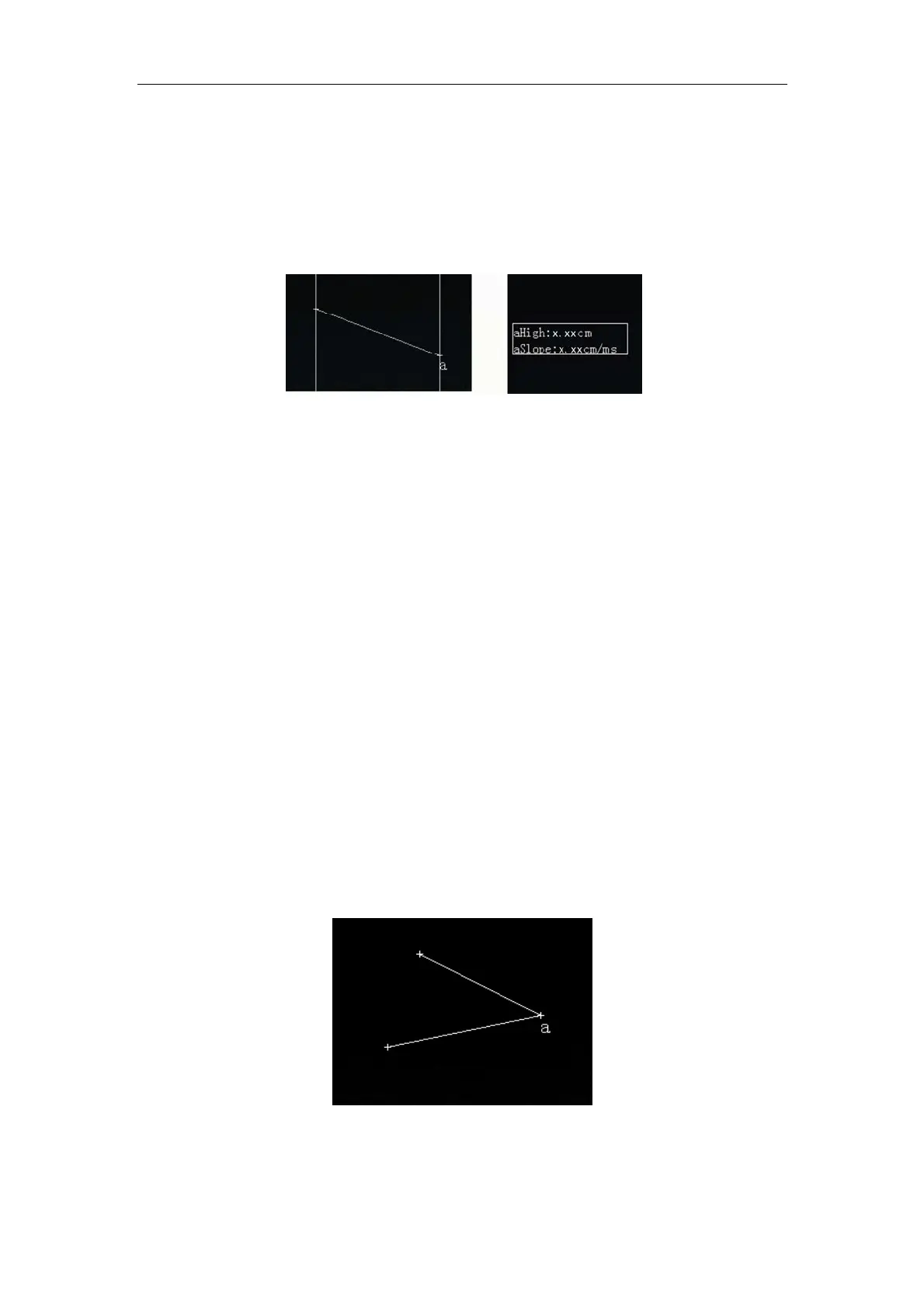 the first vertical calipers and its + cursor. “aHigh: 0.00cm, aSlope: 0.00cm/ms“ (High is the