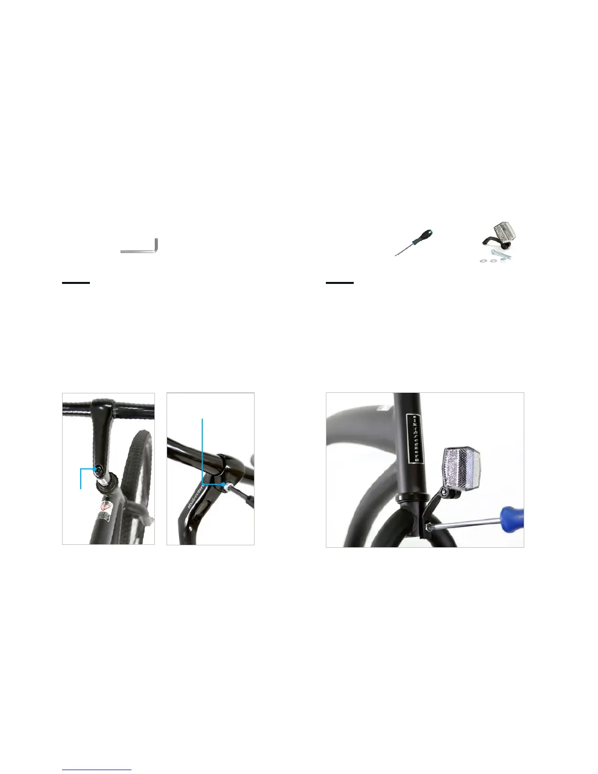 Line up the stem, frame, and front wheel, then tighten.