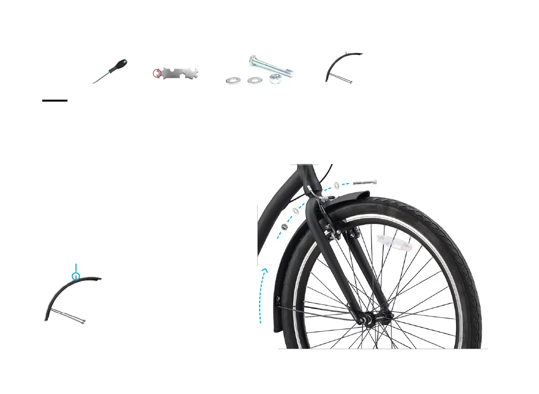 LONG BOLT, WASHER, FORK, FENDER TAB, WASHER, NUT.
