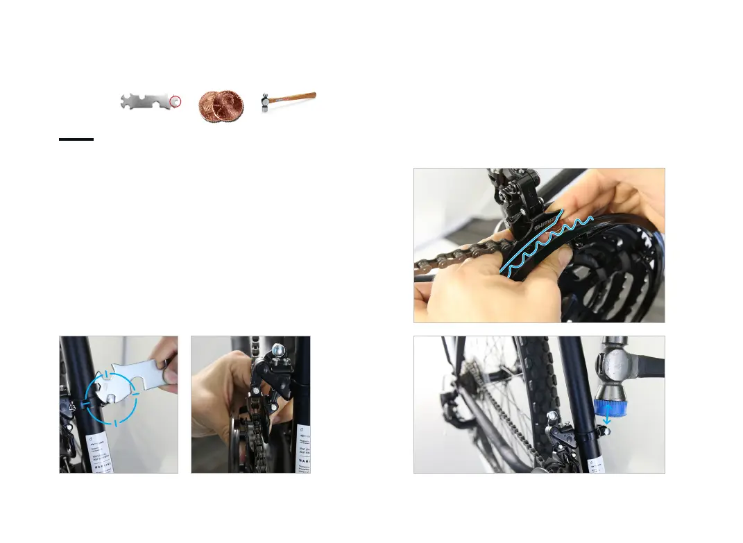 ter turn at a time until you are able to tap the derailleur