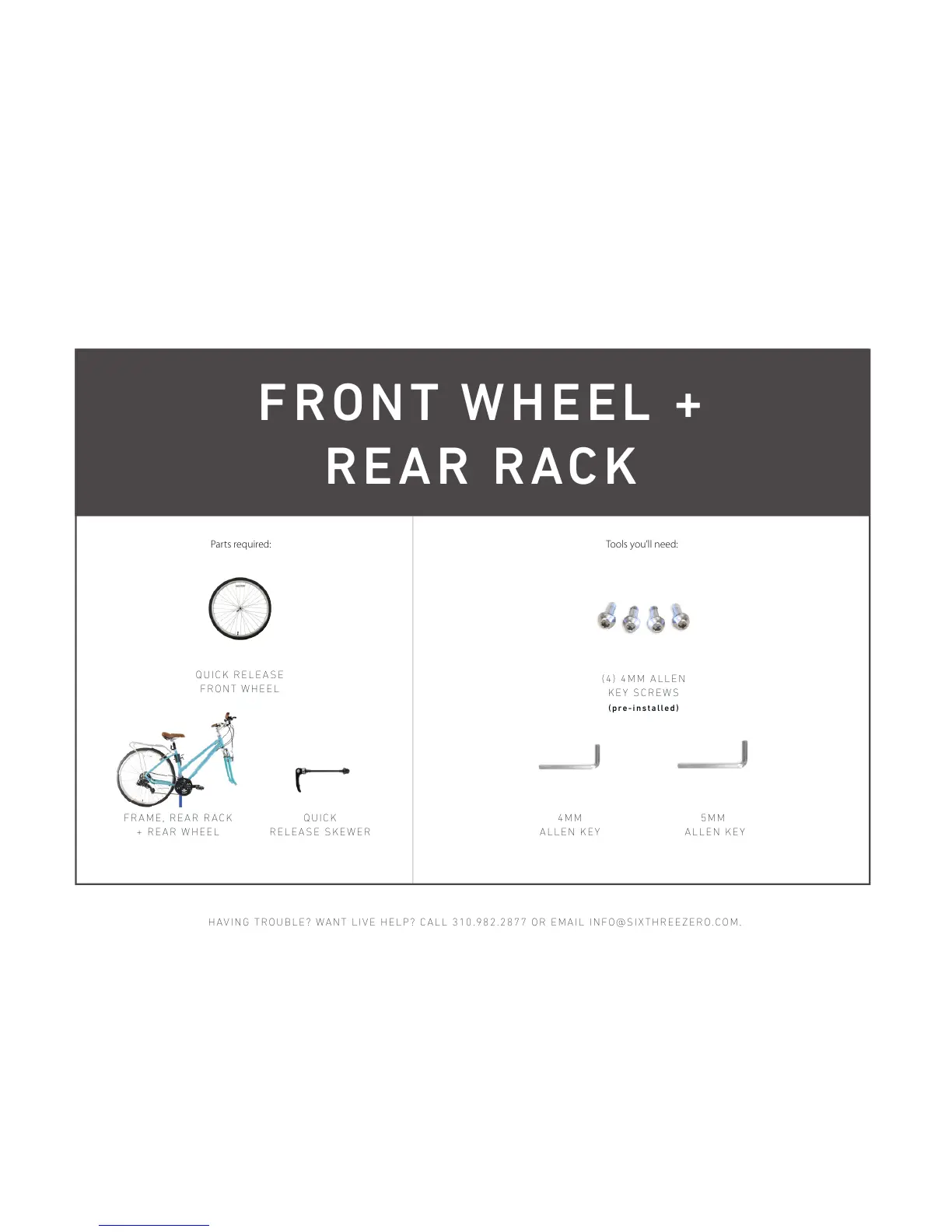 HAVING TROUBLE? WANT LIVE HELP? CALL 310.982.2877 OR EMAIL INFO@SIXTHREEZERO.COM.