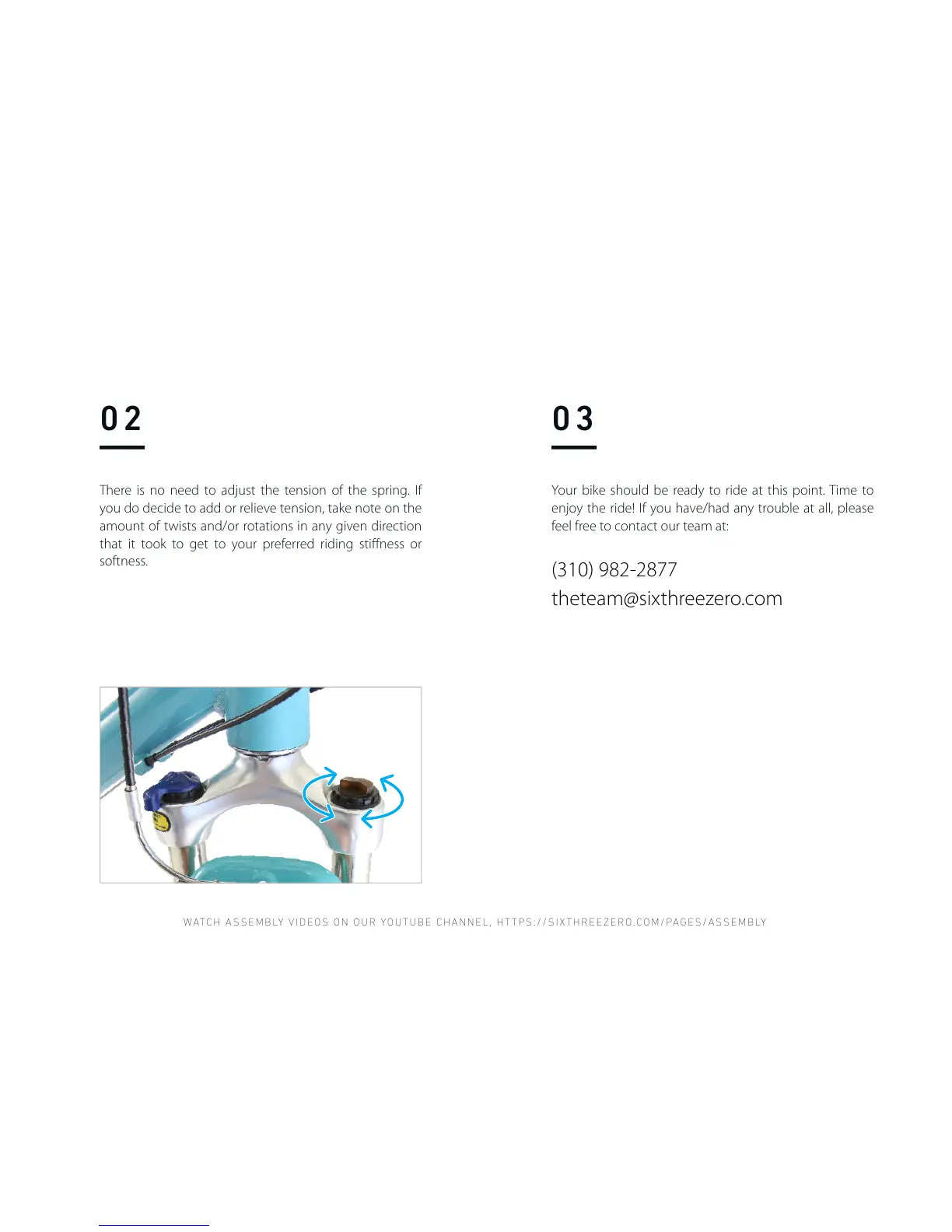 WATCH ASSEMBLY VIDEOS ON OUR YOUTUBE CHANNEL, HTTPS://SIXTHREEZERO.COM/PAGES/ASSEMBLY