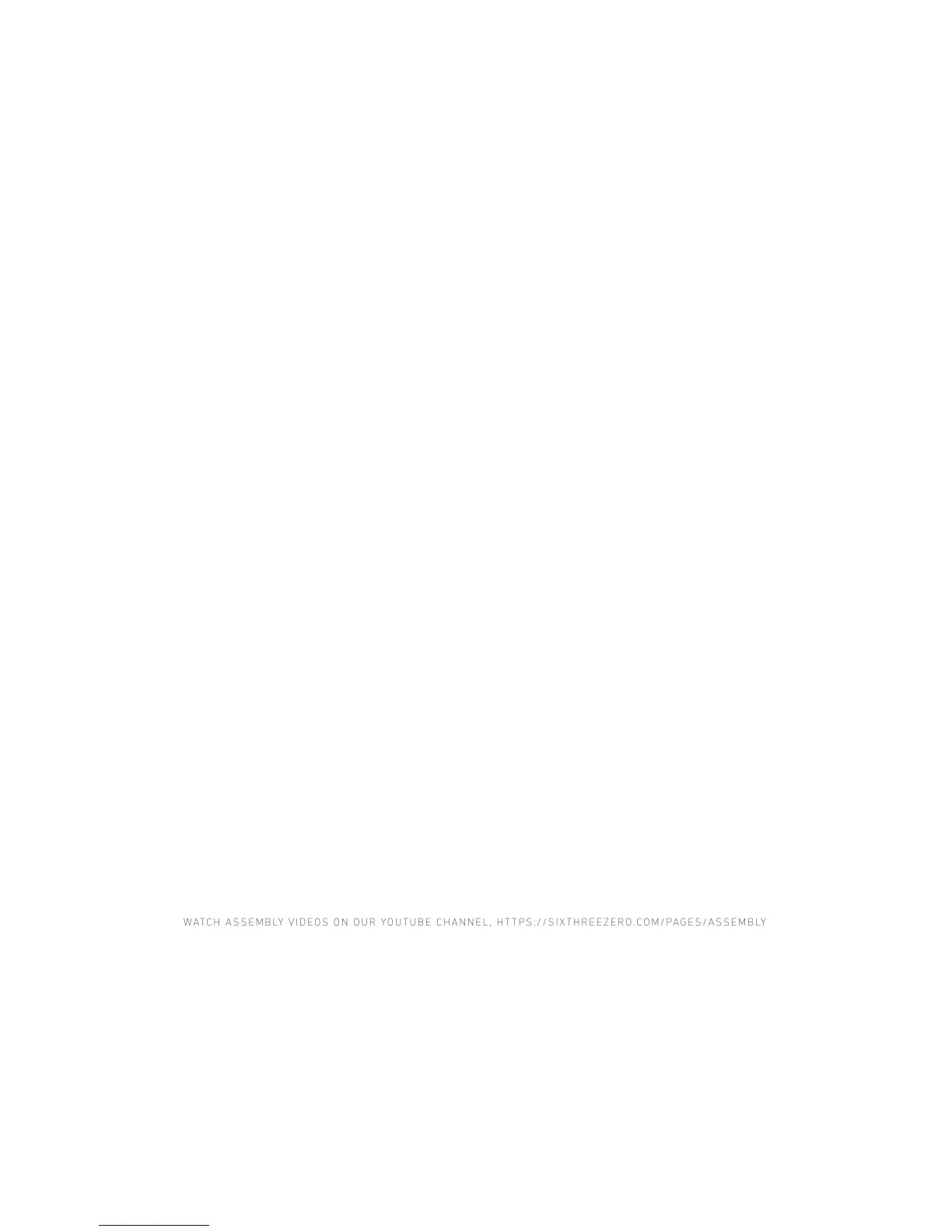 WATCH ASSEMBLY VIDEOS ON OUR YOUTUBE CHANNEL, HTTPS://SIXTHREEZERO.COM/PAGES/ASSEMBLY