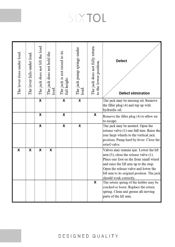 SIXTOL SX - Troubleshooting; Defect Elimination Guide