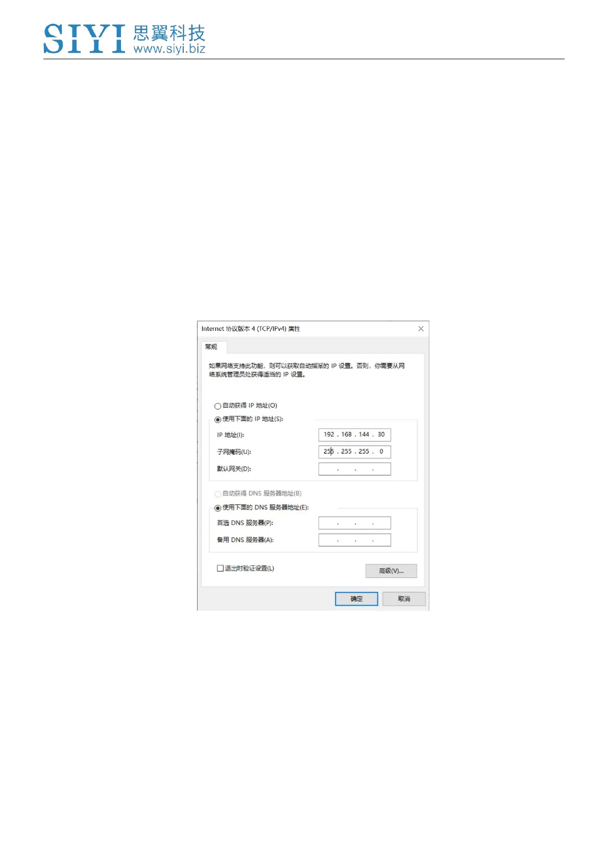 4. Modify the computer’s Ethernet settings to have the same gateway with SIYI