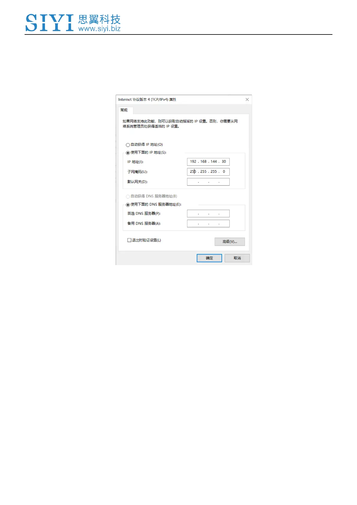 4. Modify the computer’s Ethernet settings to have the same gateway with SIYI link