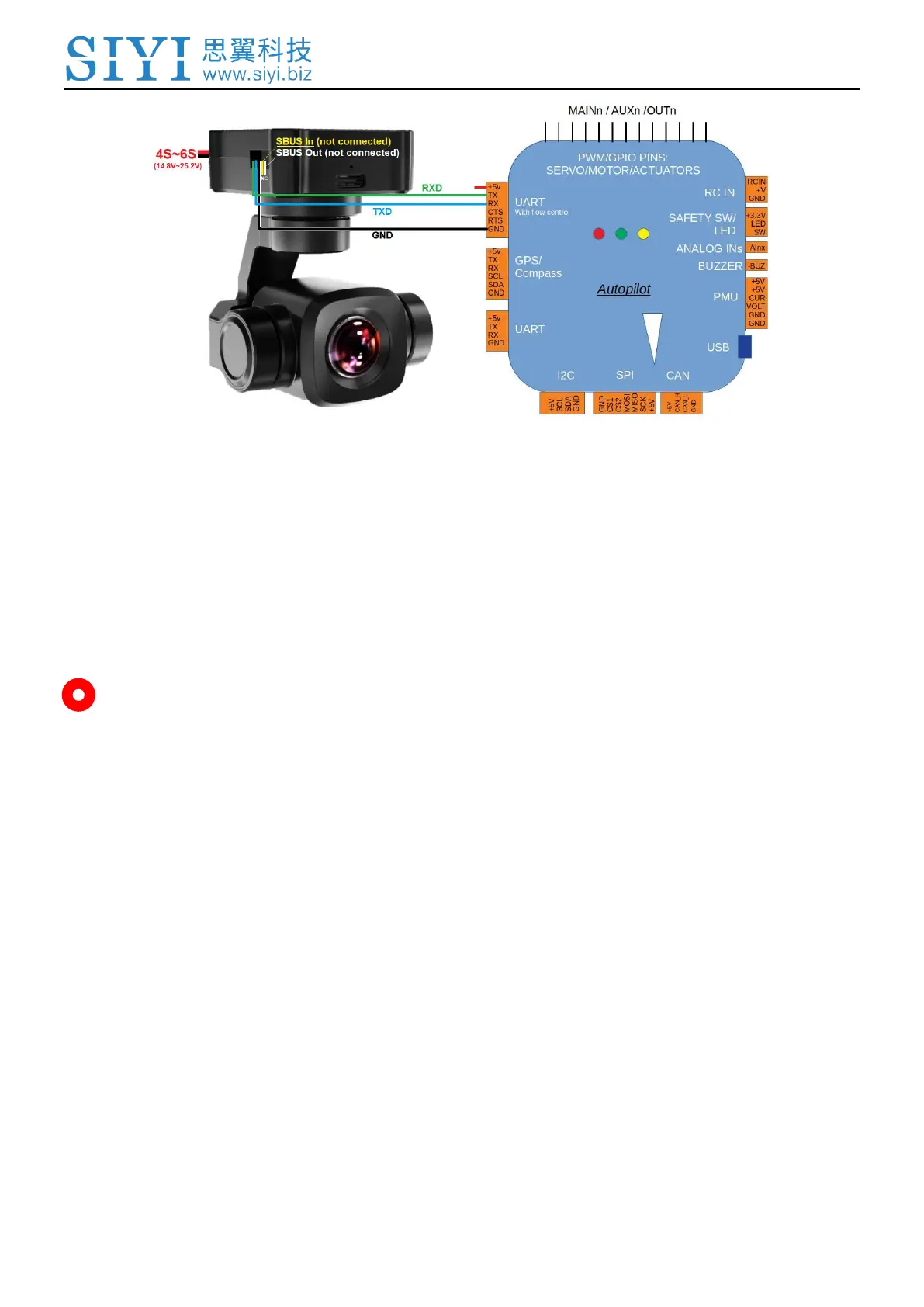 1. Power SIYI gimbal camera and Ardupilot flight controller.
