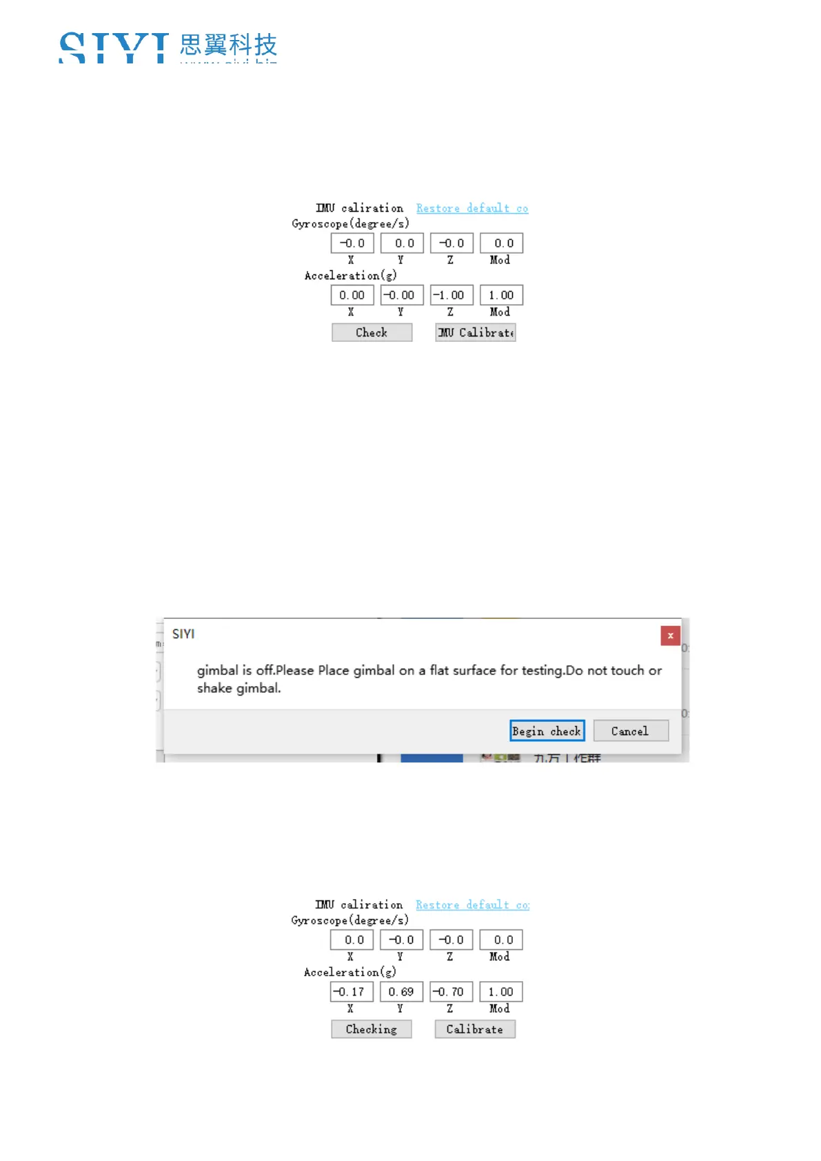 sure that the IMU is static. Do not touch or vibrate the gimbal camera. Then go