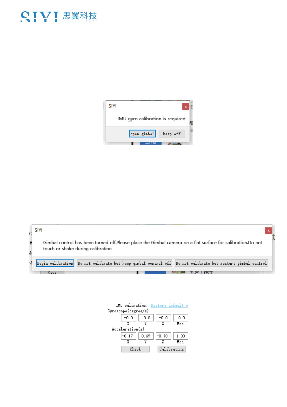 4. If IMU is not working normally, there will be a message box to indicate “calibration