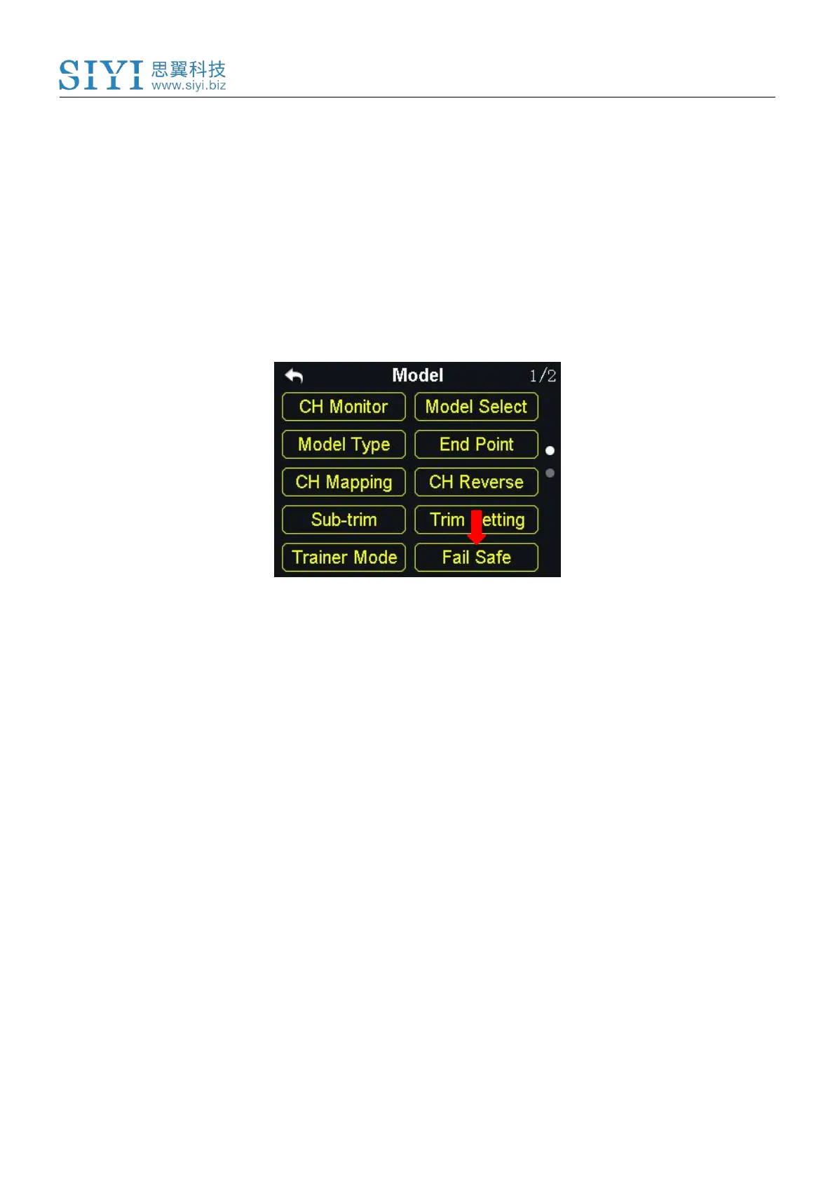 1. In the model settings menu, tap on “Fail Safe”, in the screen it shows the