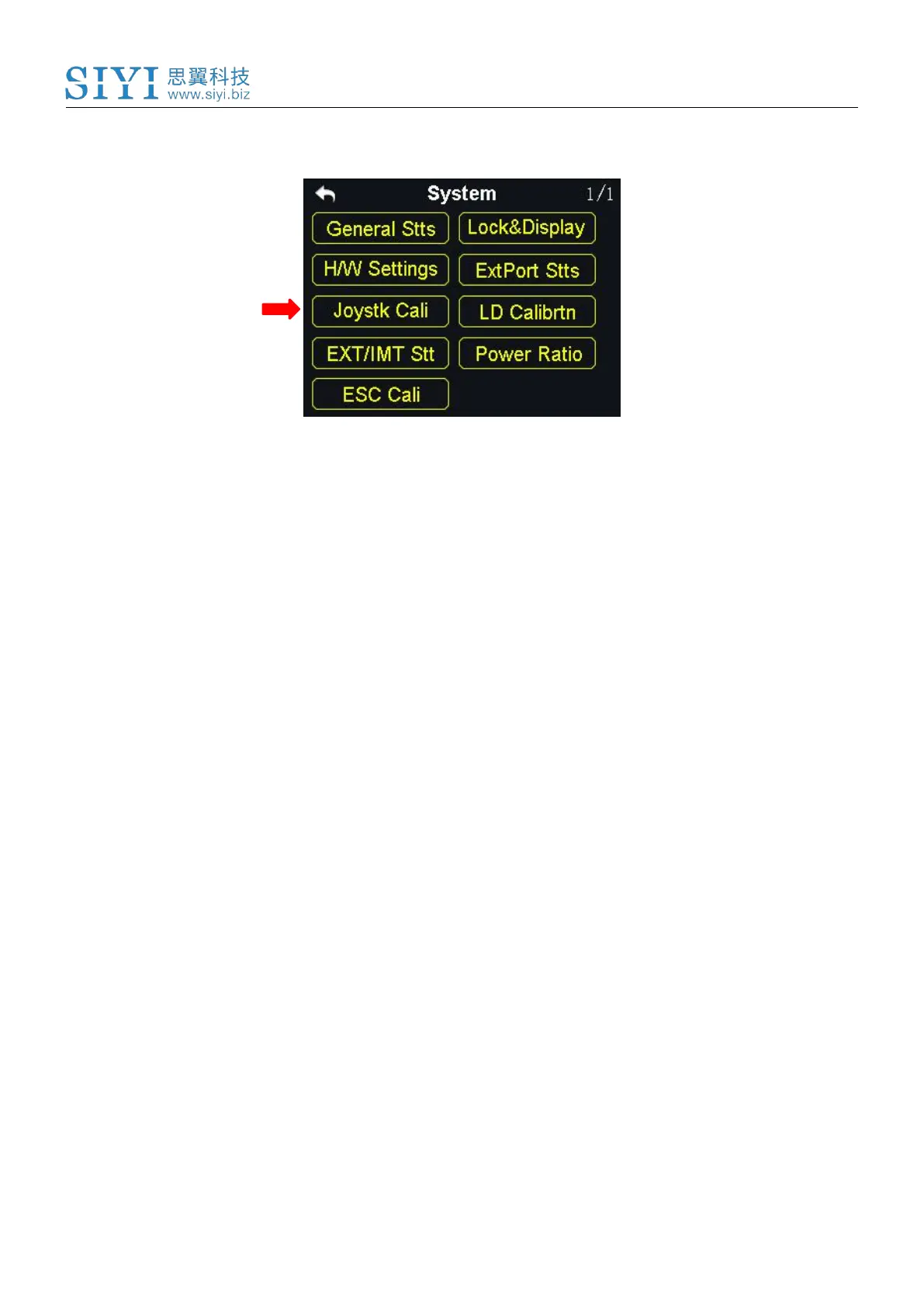 1. In the system settings menu, tap on “Joystick Calibrating”, in the screen it
