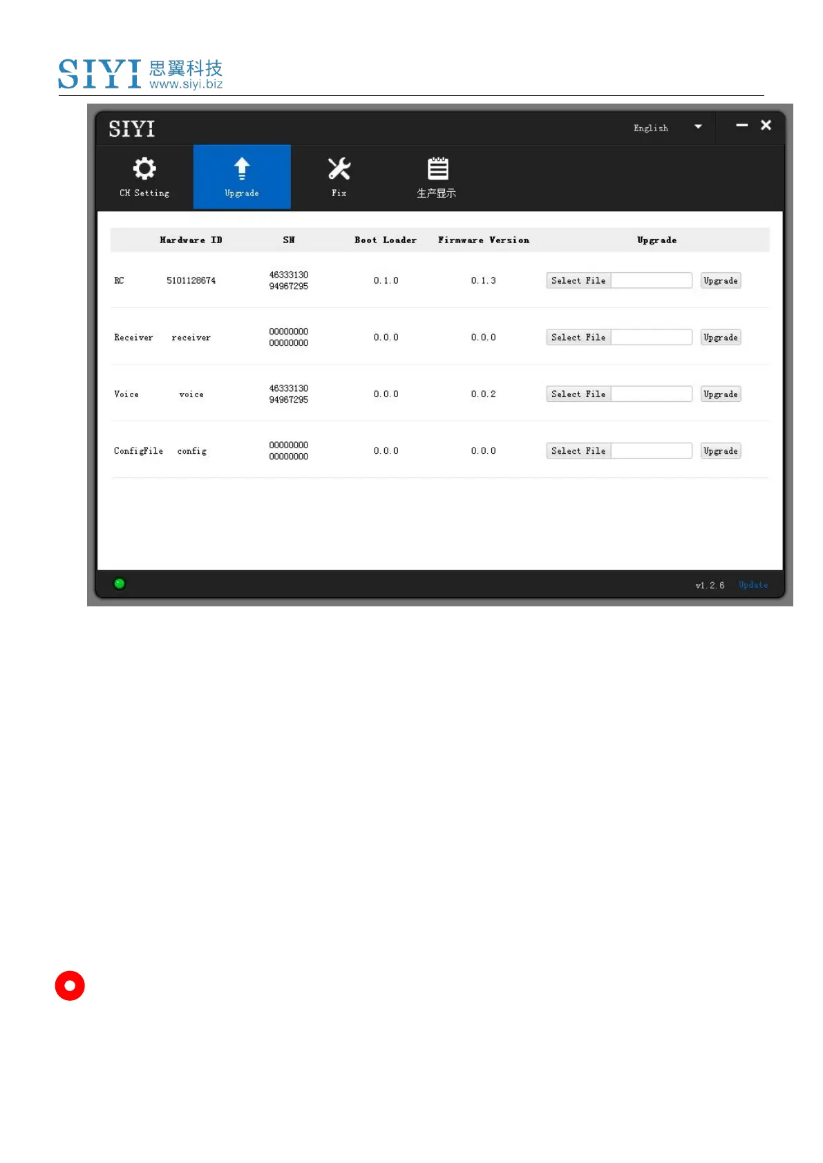 button in the “RC” line to import the latest ground unit firmware. Then click