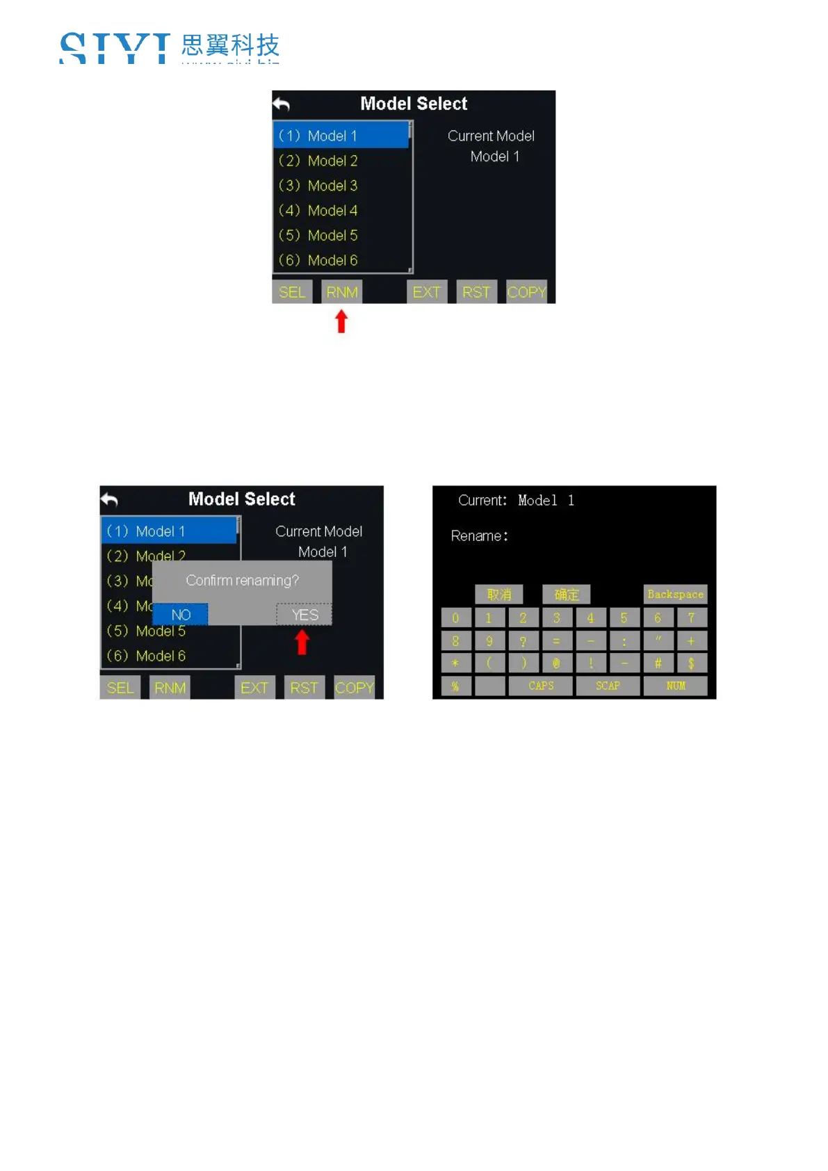 2. Input a new name for the model by using the virtual keyboard, then “yes” to finish.