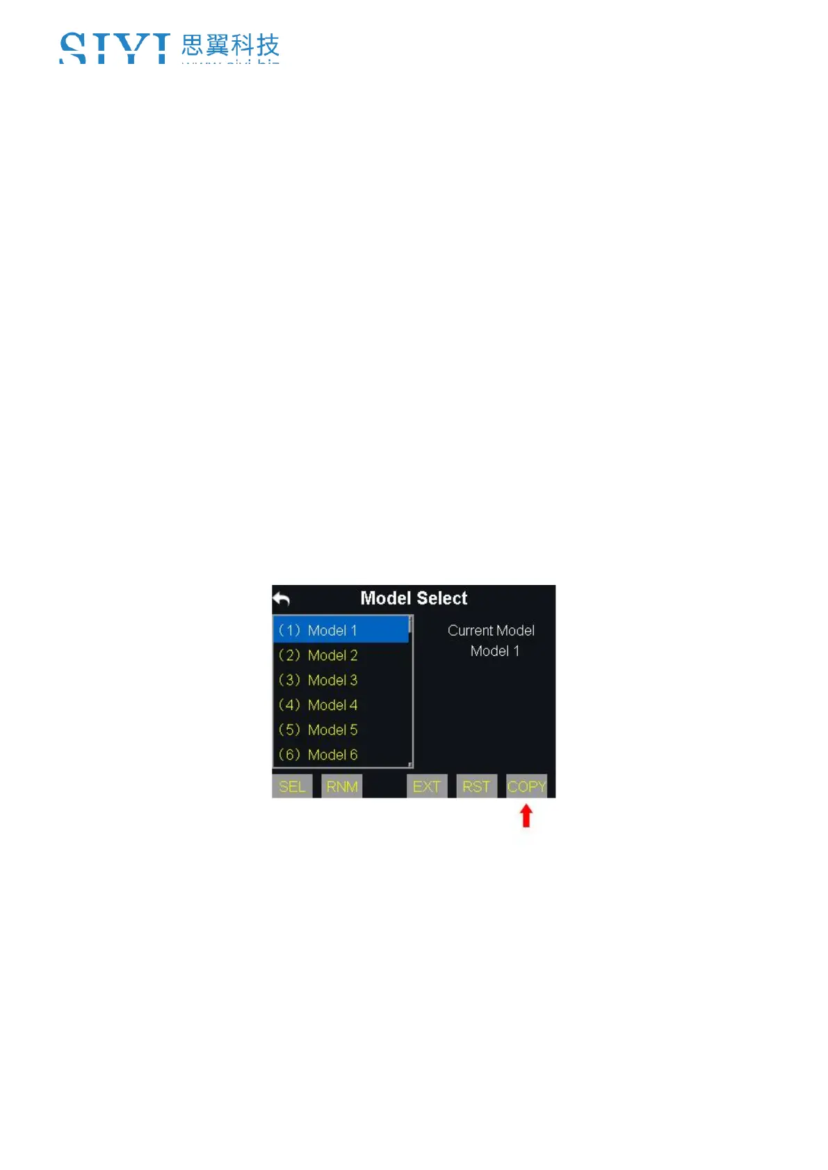 1. Select a model, then “Copy”. It displays the current channel and a target channel.