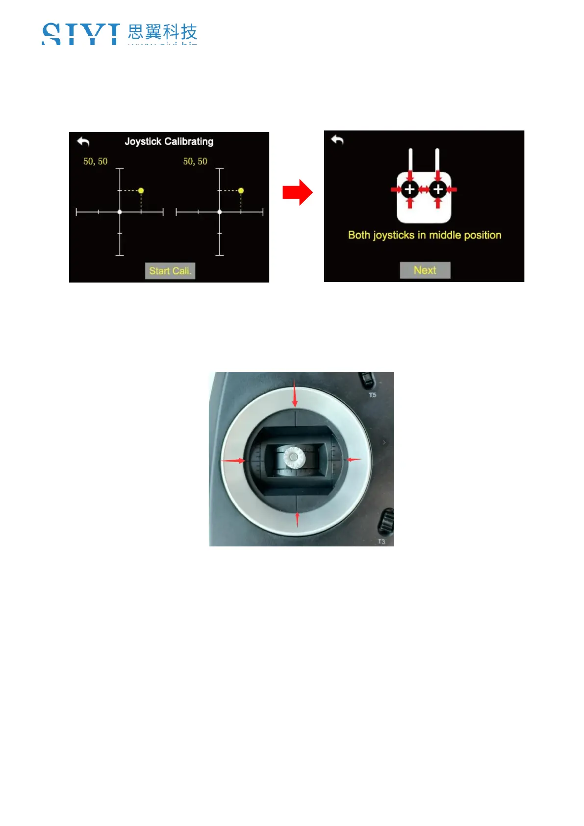 4. Hold / Adjust both joysticks to make them stay in middle positions (when