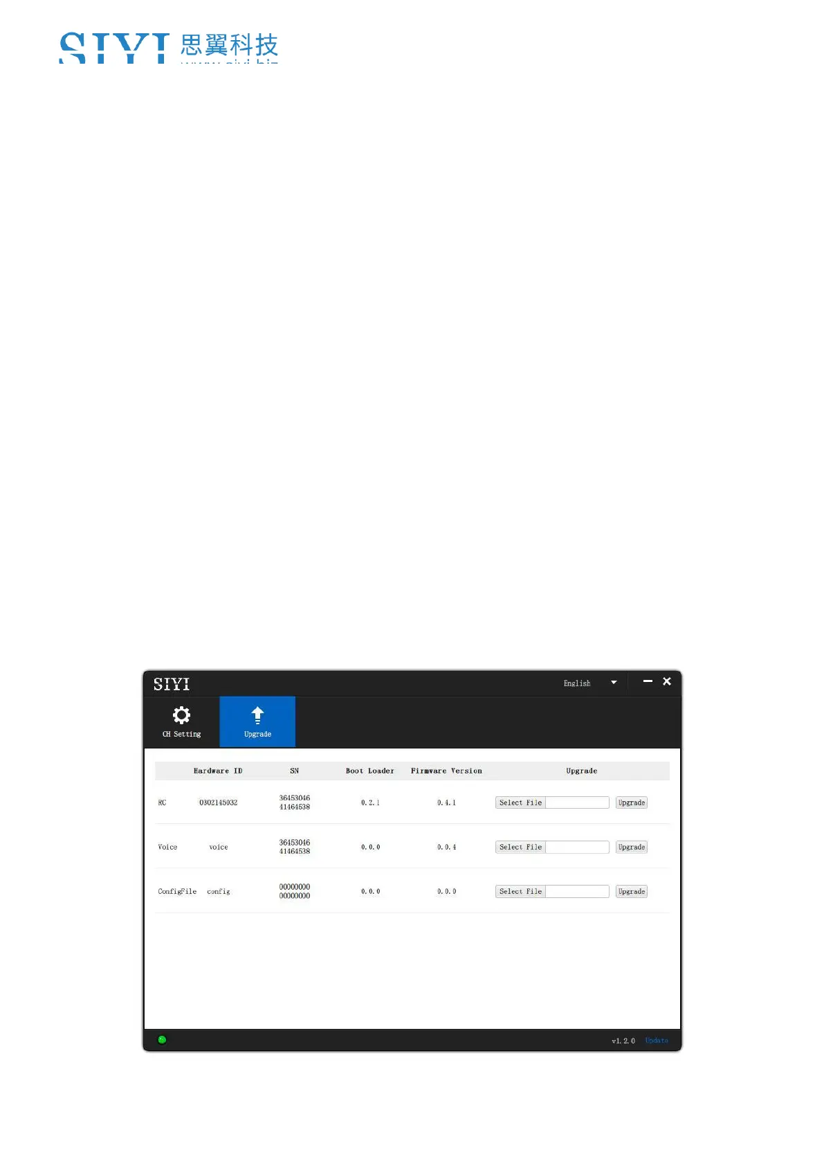 3. In “SIYI Assistant” software, go to page “Upgrade”. After “Config File”, click on