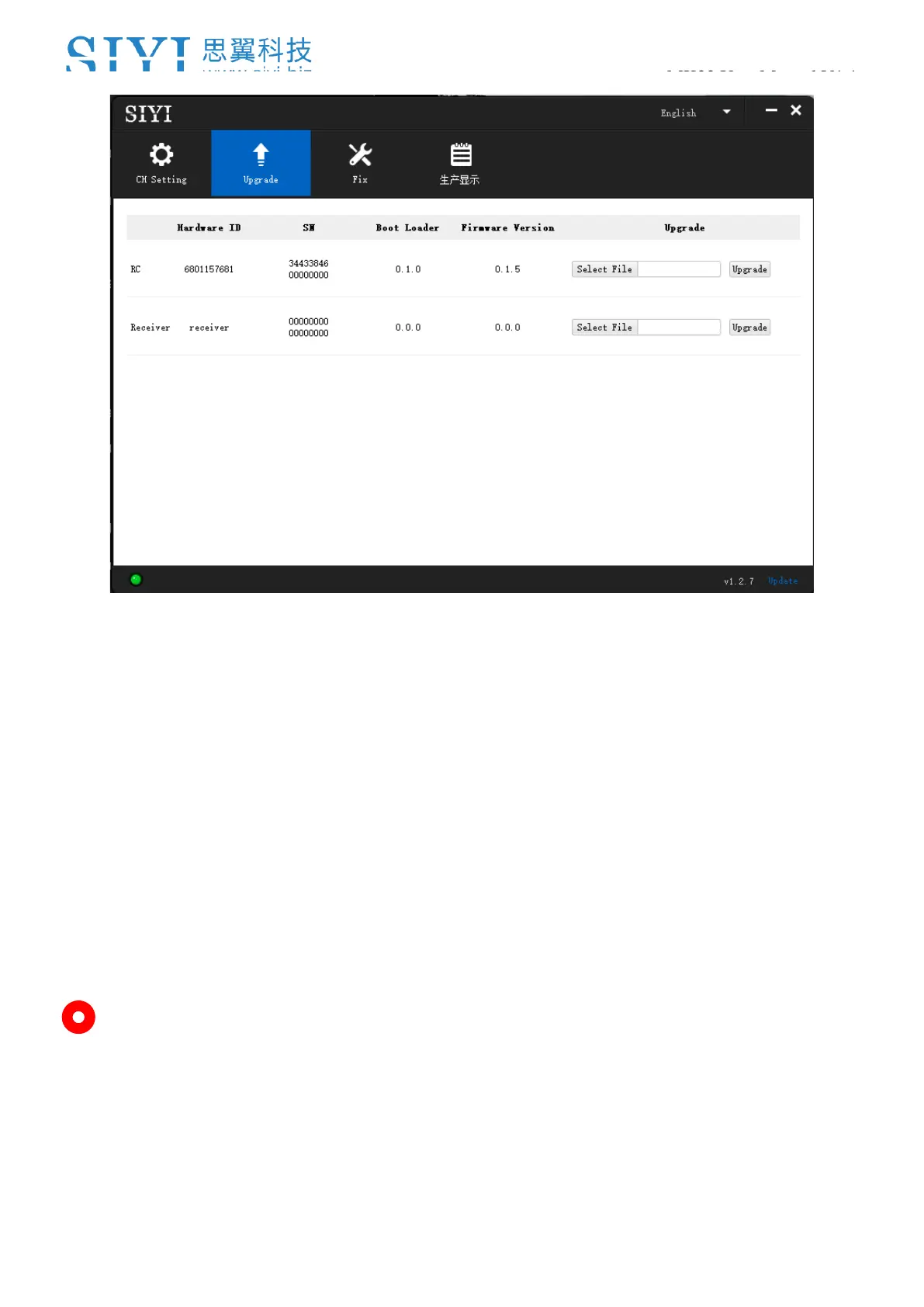 line to import the latest remote controller firmware. Then click “Upgrade” and