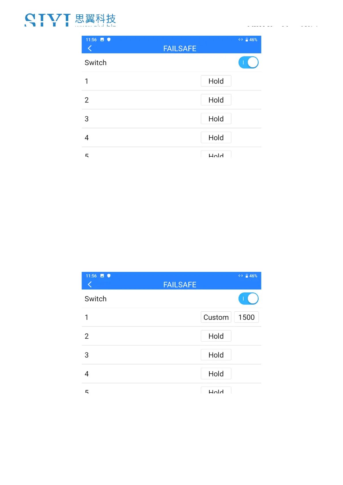 4. If you require a specific value in the channel, please turn on Failsafe switch first
