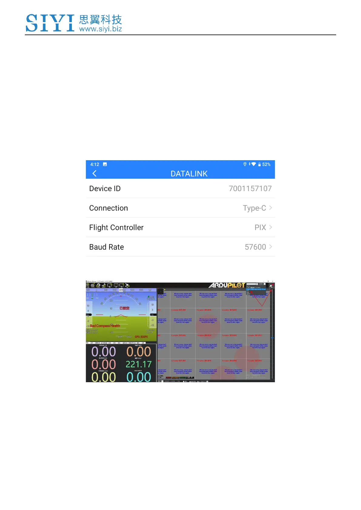 2. In “SIYI TX” app, go to “Datalink”, and choose “Upgrade Port (MK15) / Type-C