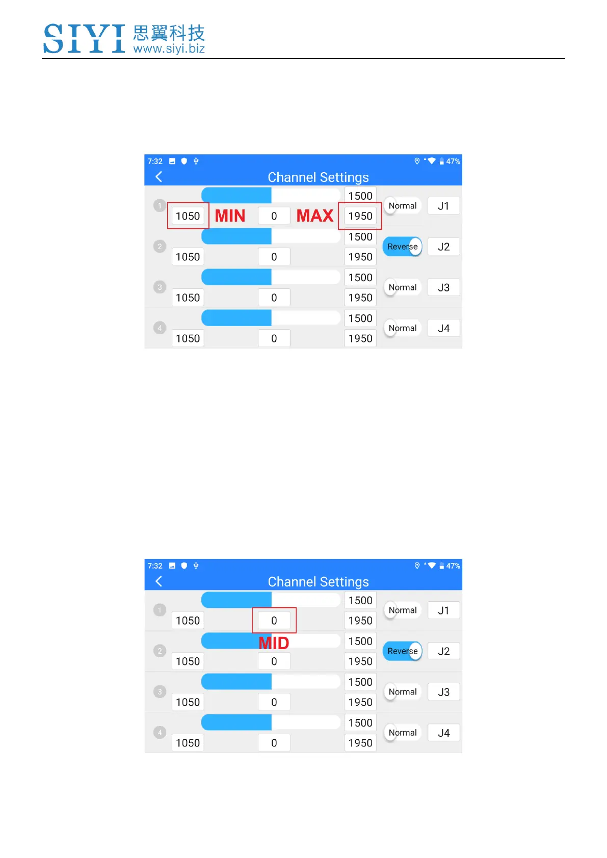 MK32E remote controllers default End Point range is between 1050 and 1950.