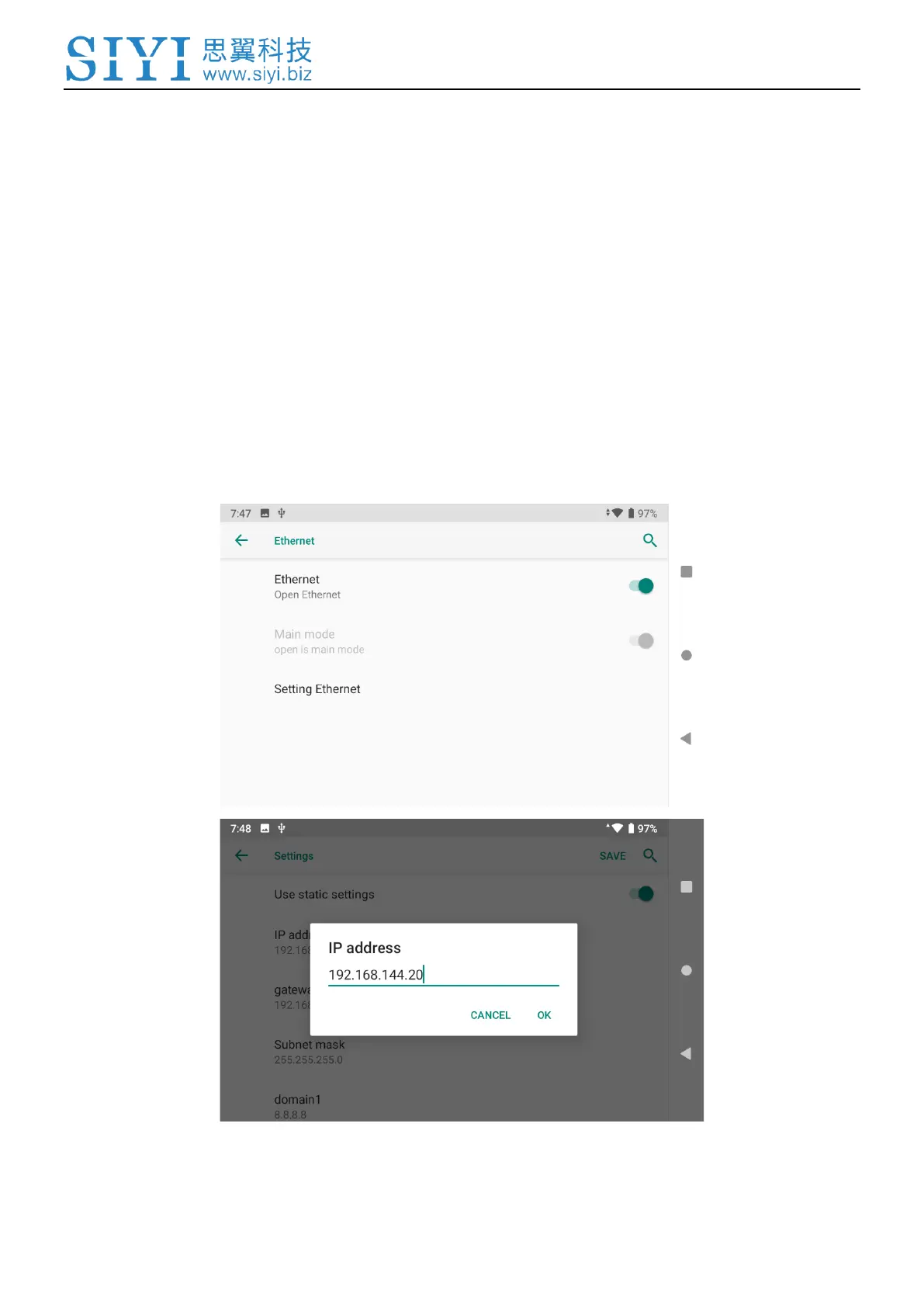 1. Configuring MK32E ground unit’s Android static IP addresses is necessary