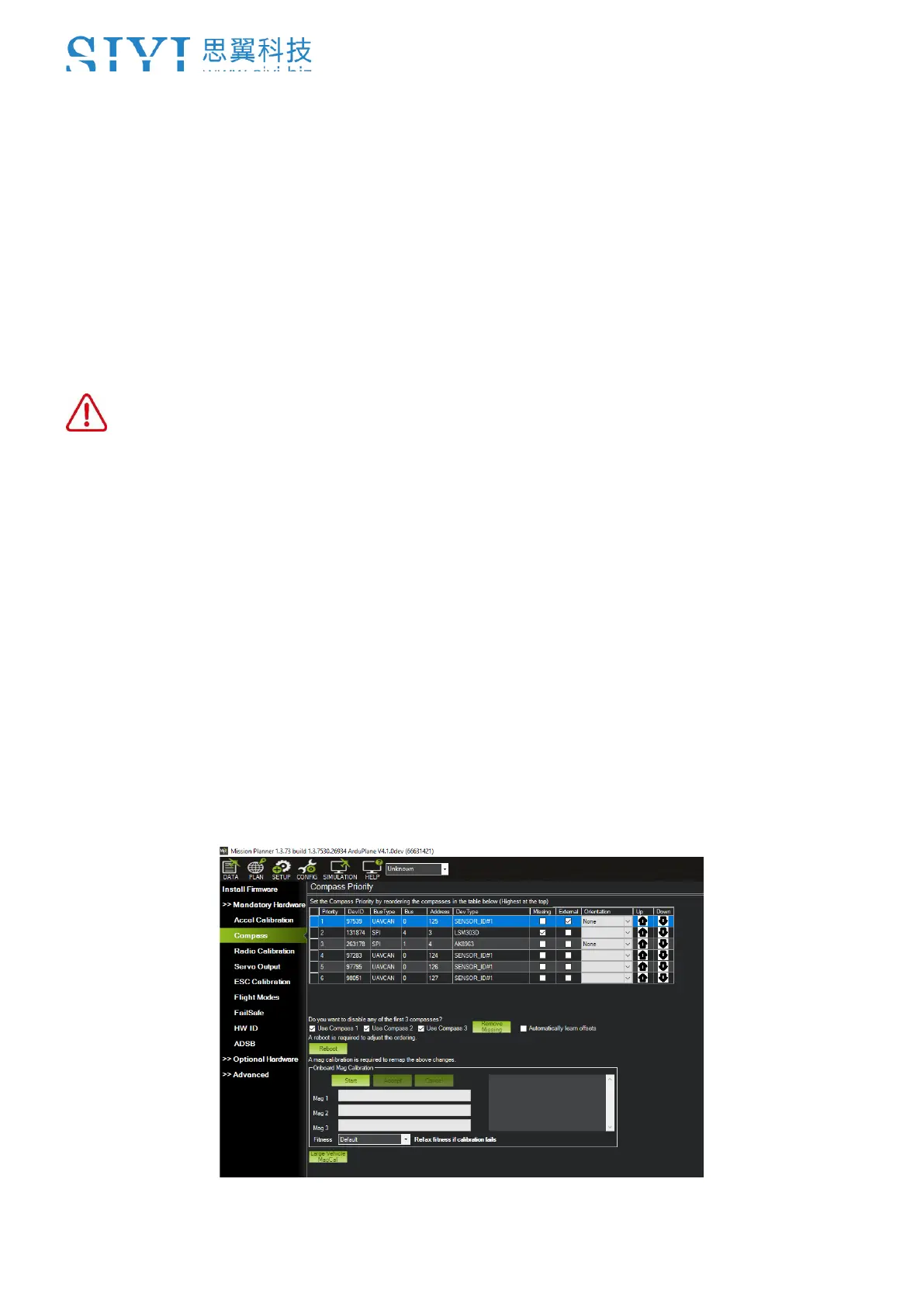 Do not calibrate the compasses near any metallic or magnetic field producing object