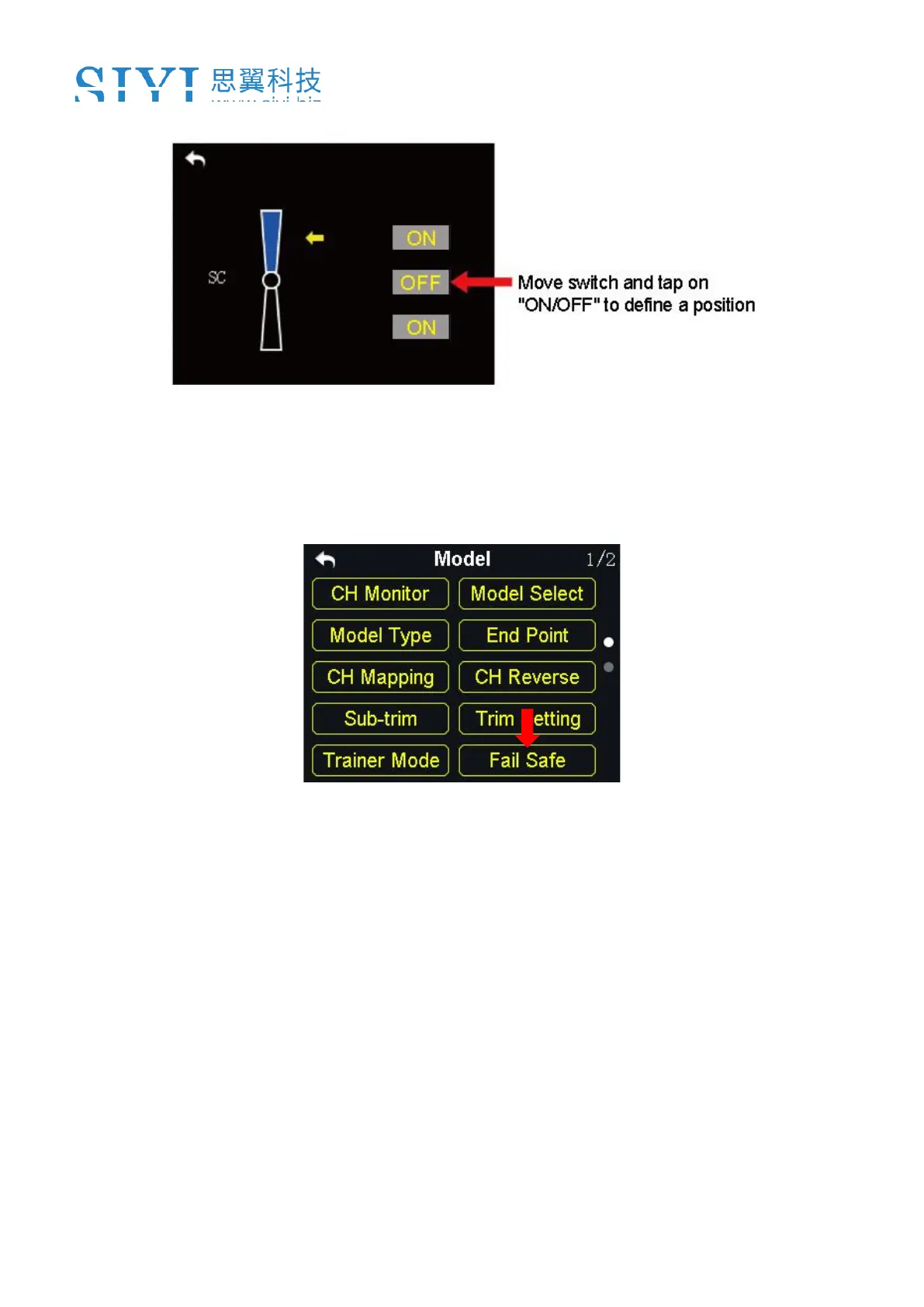 2. In “Model Settings” menu, tap on “Fail Safe” to enter Fail-Safe menu;