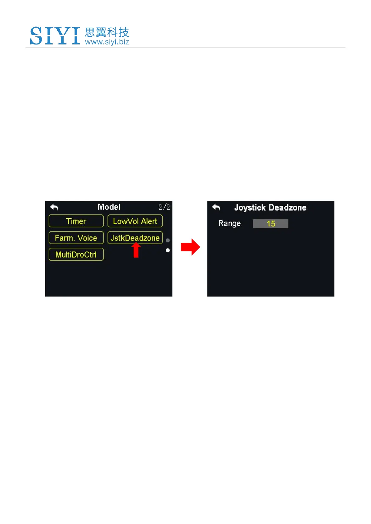 1. In the model settings menu, tap on “JstkDeadZone”, in the screen it shows the