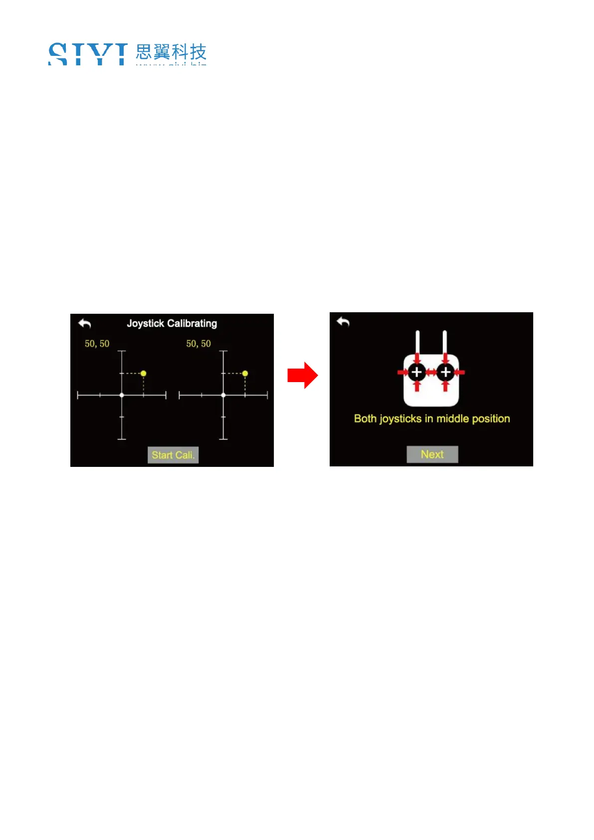 4. Hold the joysticks and make them stay in the middle position (the joystick’s tick