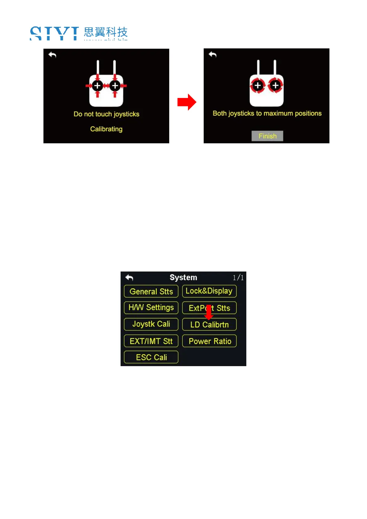 1. In the system settings menu, tap on “LD Calibrating”, in the screen it shows the