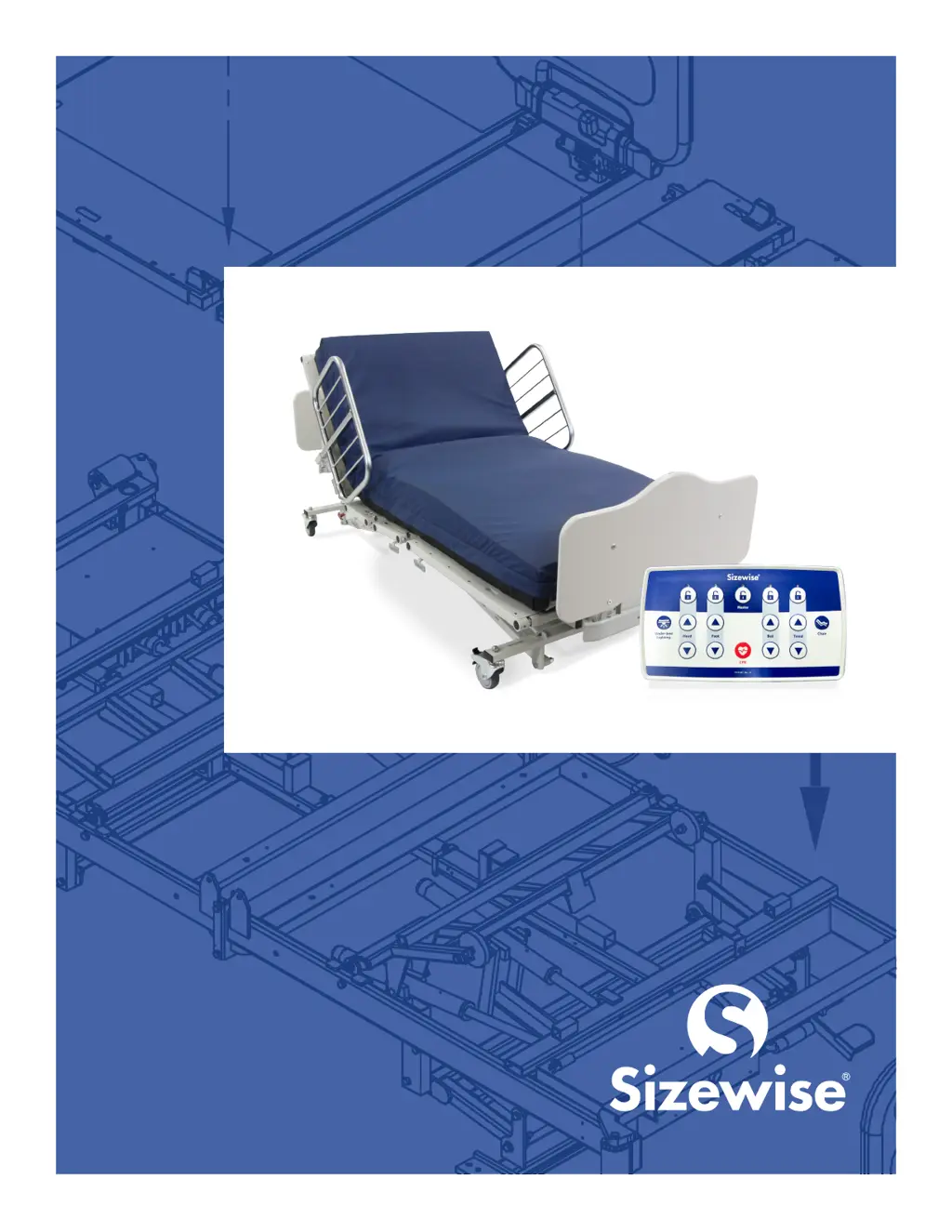 If your Sizewise Medical Equipment bed stops working and locks, try these steps: * **Hand-held Controller:** Press and hold the up arrow for both the head and foot sections simultaneously for 5 seconds to release the lockout. * **Attendant Control Board:** Press and hold both the Master lock button and the CPR button simultaneously for 5 seconds to release the lockout.