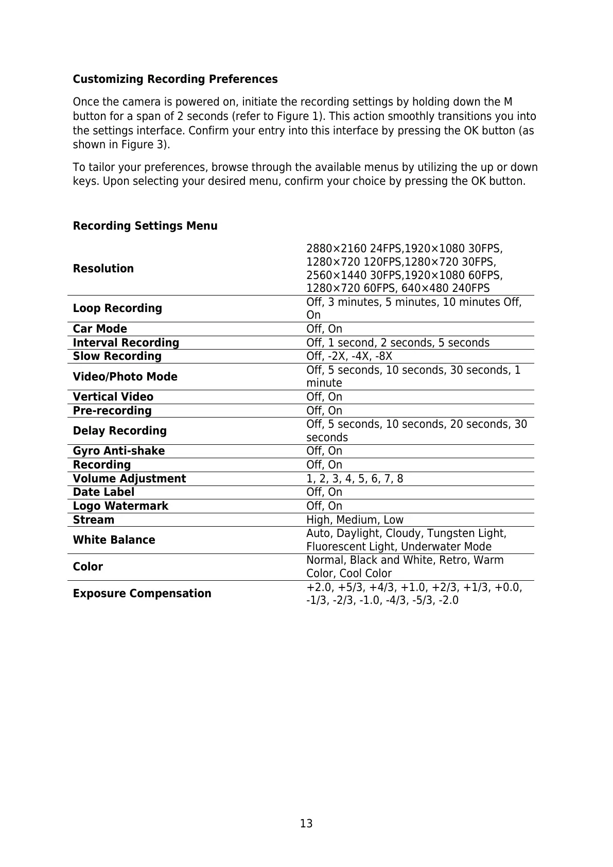 Once the camera is powered on, initiate the recording settings by holding down the M