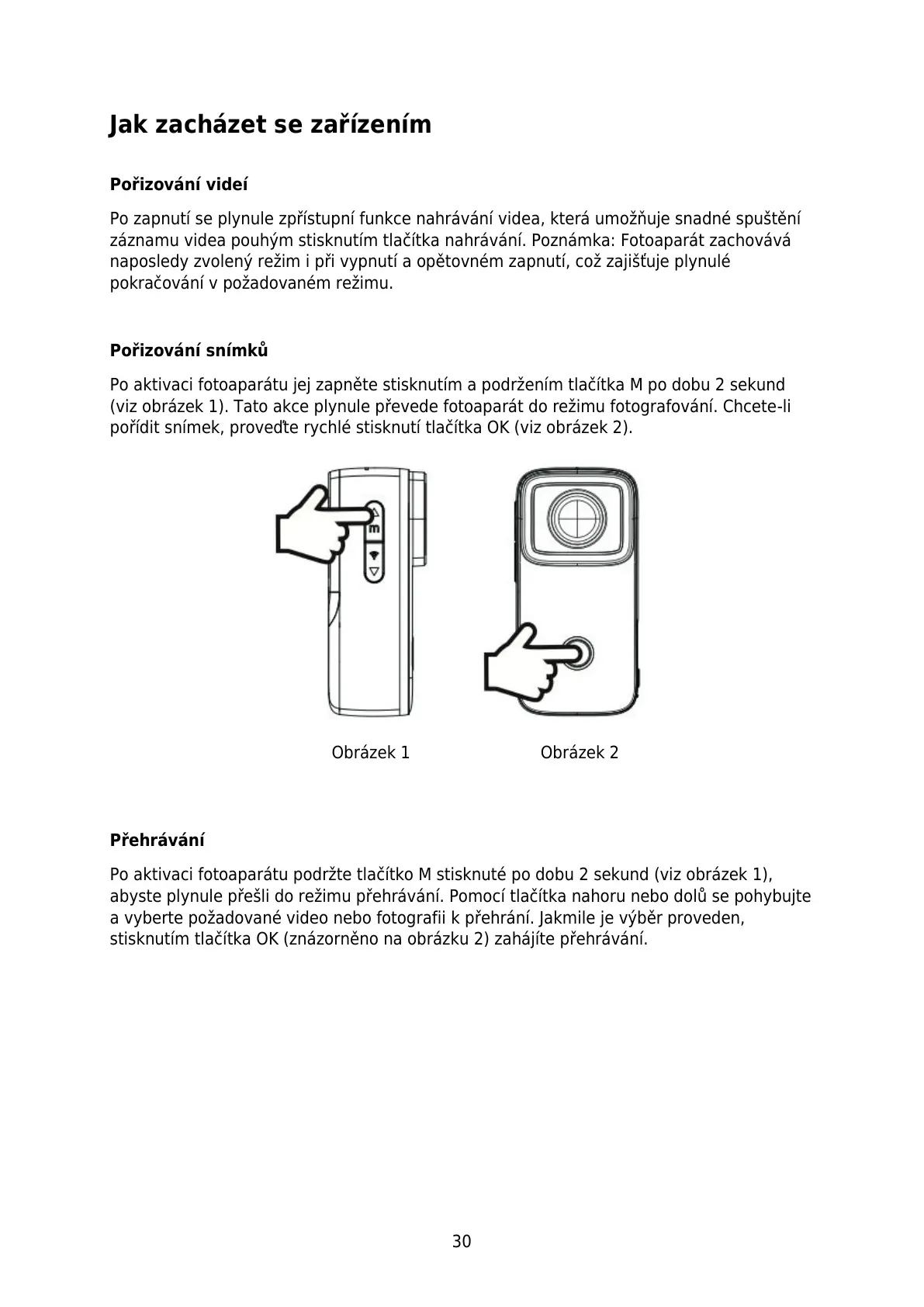 Po aktivaci fotoaparátu podržte tlačítko M stisknuté po dobu 2 sekund (viz obrázek 1),