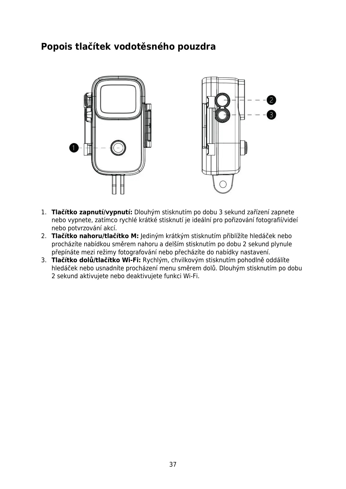 3. Tlačítko dolů/tlačítko Wi-Fi: Rychlým, chvilkovým stisknutím pohodlně oddálíte