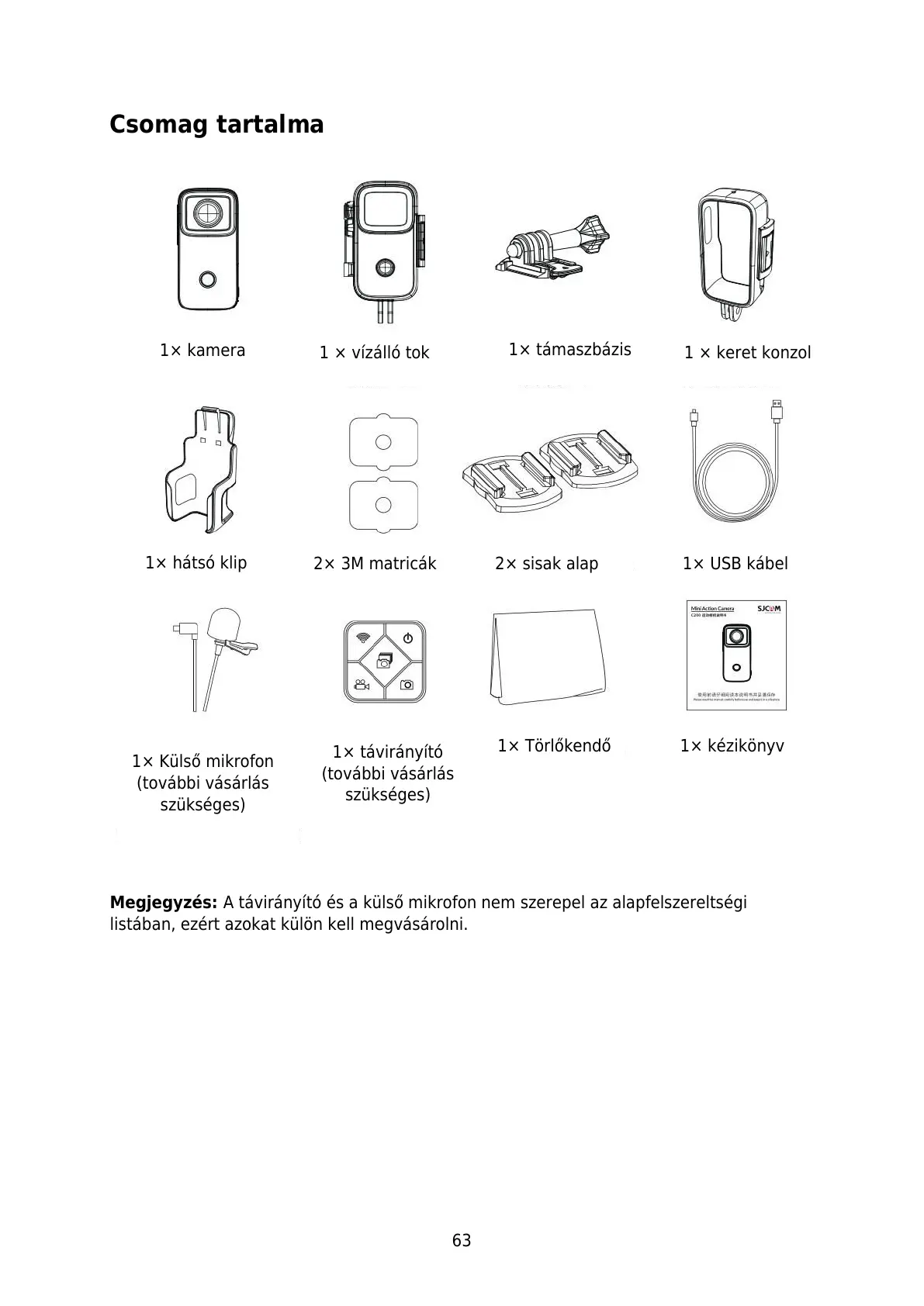 Megjegyzés: A távirányító és a lső mikrofon nem szerepel az alapfelszereltségi