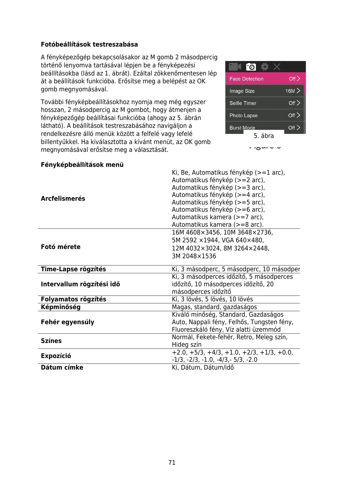 fényképezőgép beállításai funkcióba (ahogy az 5. ábrán