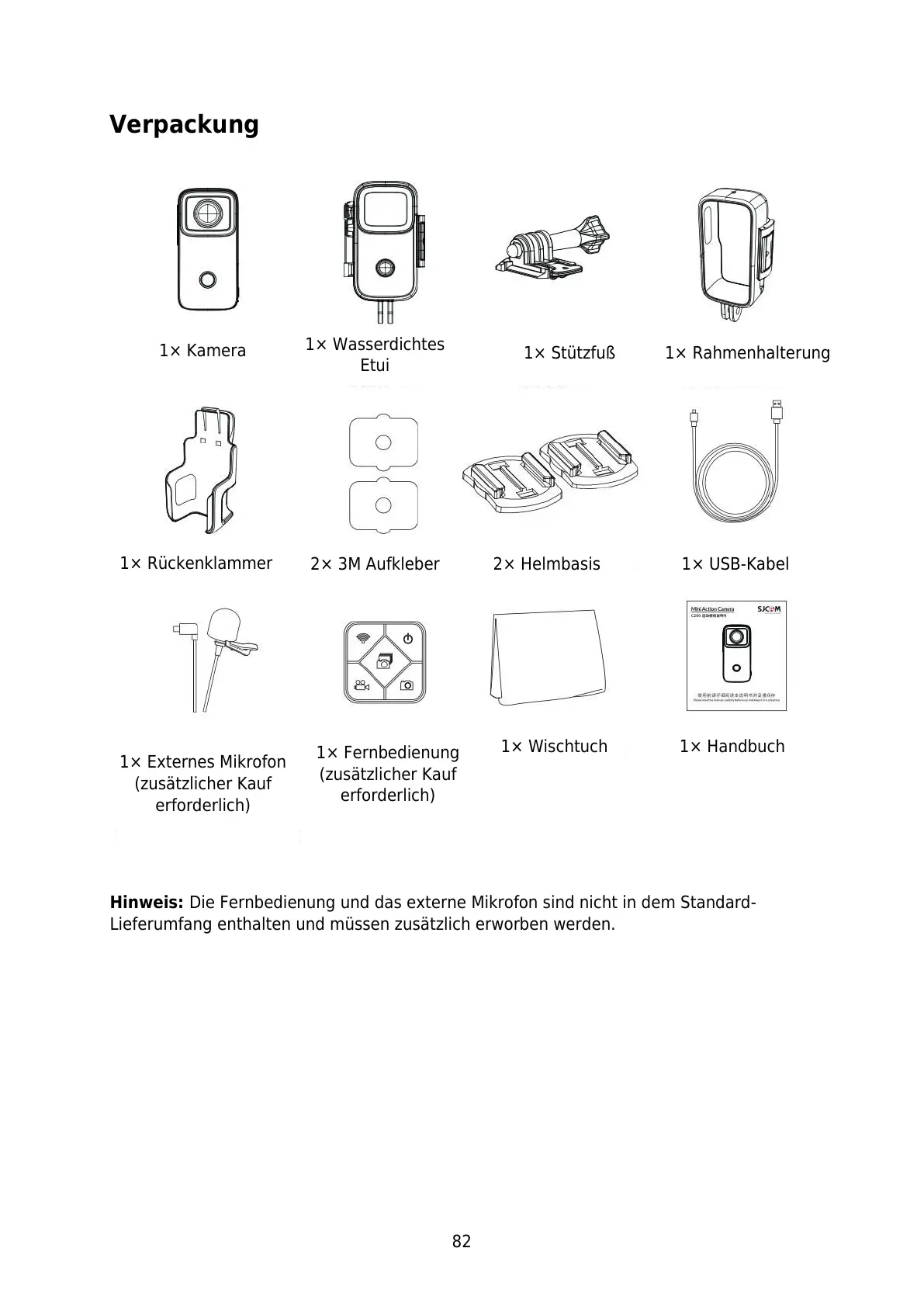 Hinweis: Die Fernbedienung und das externe Mikrofon sind nicht in dem Standard-
