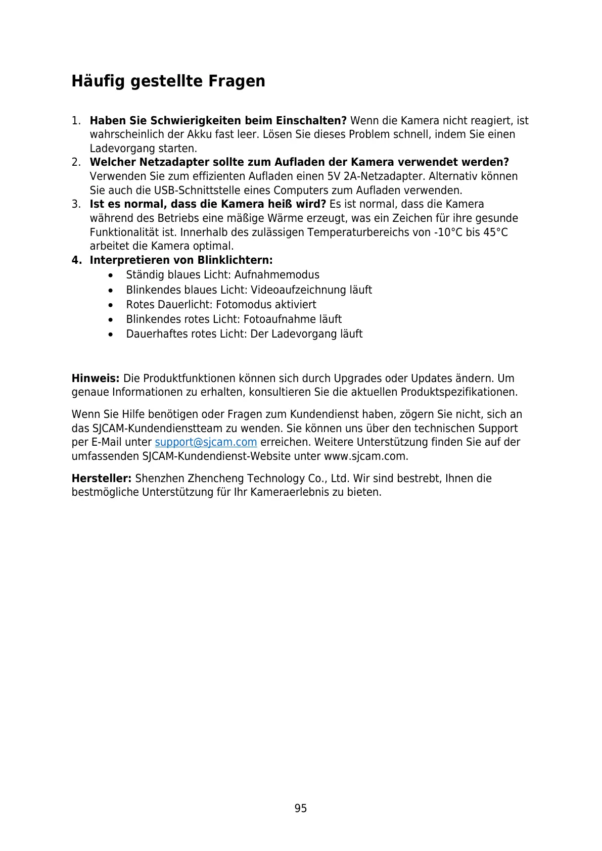 support@sjcam.com erreichen. Weitere Unterstützung finden Sie auf der