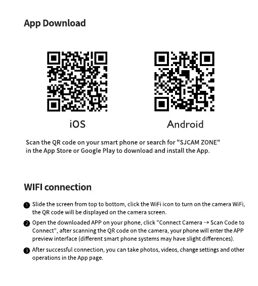 SJCAM C200PRO - App and Wi-Fi Connectivity; Mobile App Download and Wi-Fi Setup