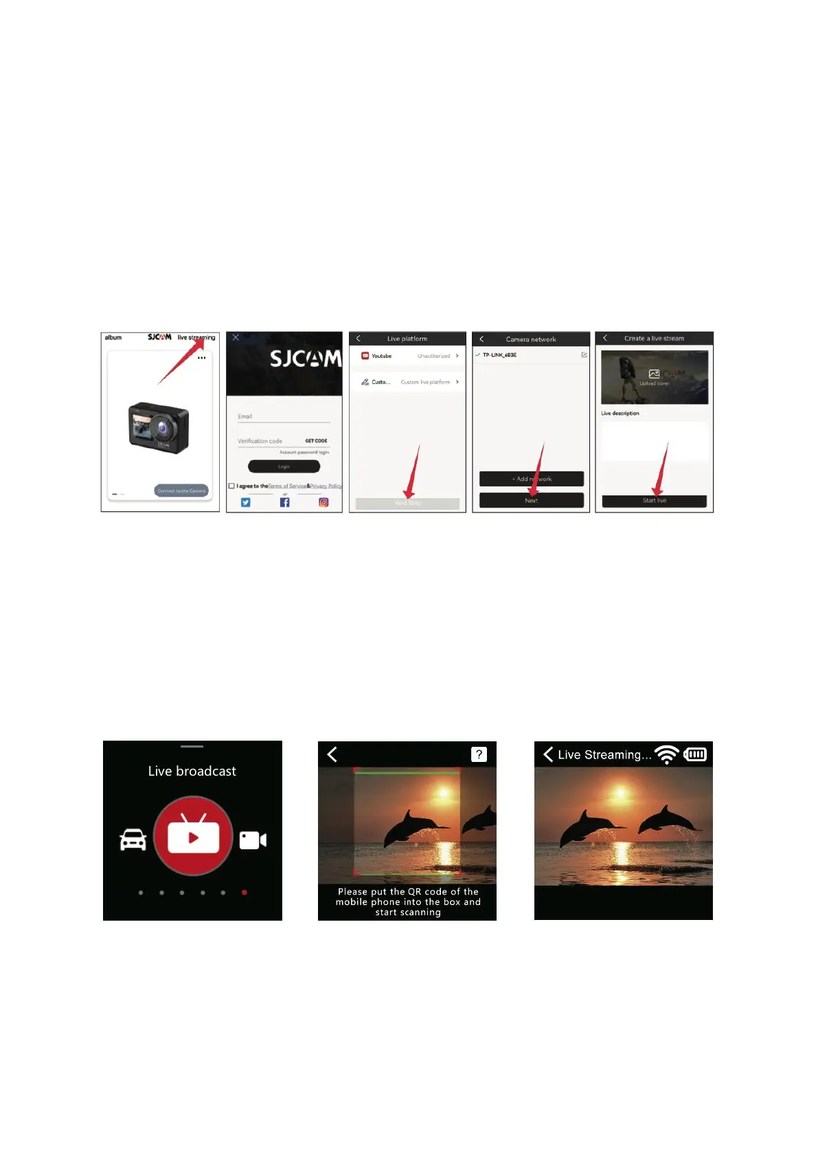 camera lens to scan the QR code for live streaming provided by the APP. Upon