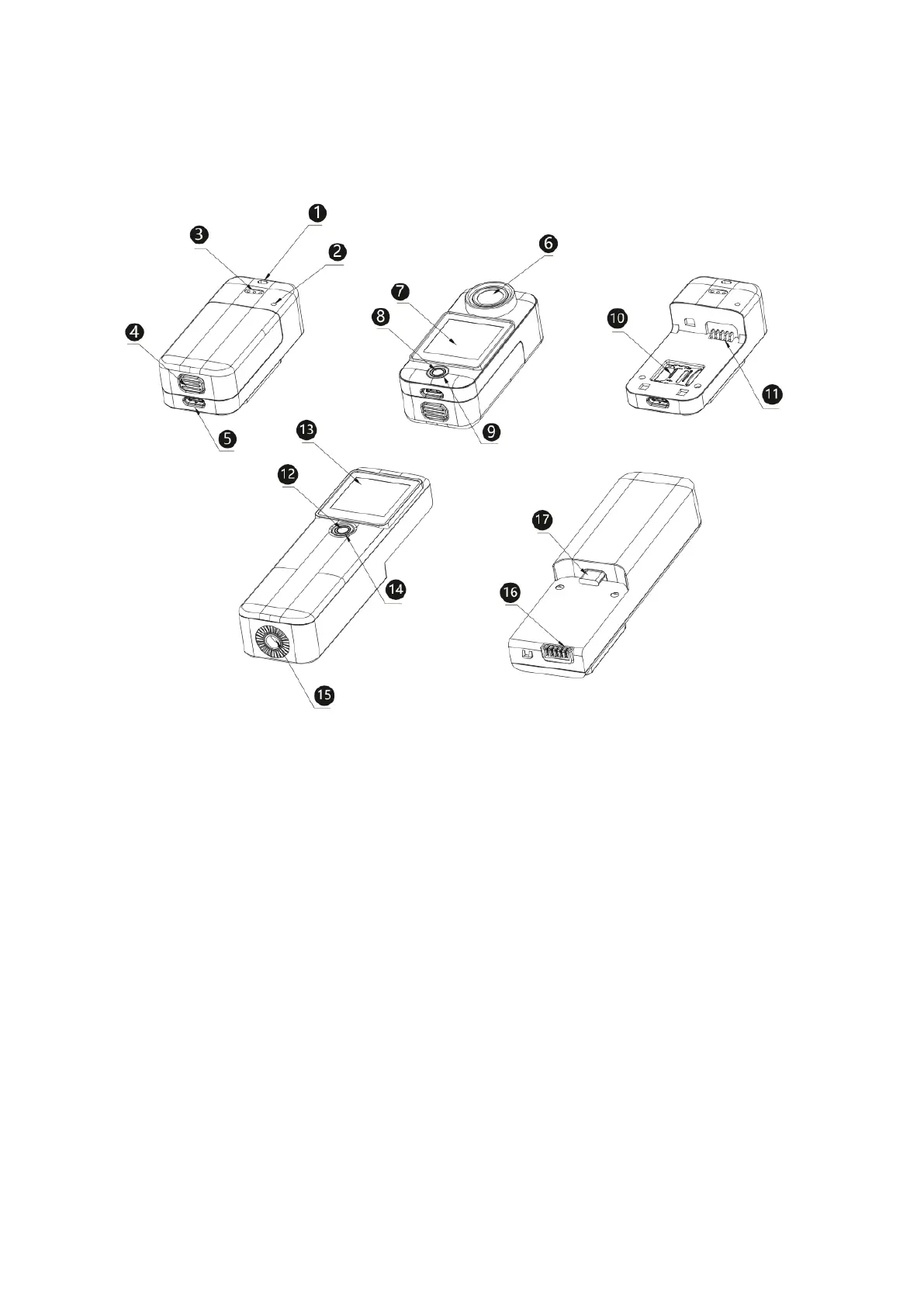 SJCAM C300 - Device Component Identification; Camera Lens and Screen; Main Control Buttons; Storage and Connectivity Ports