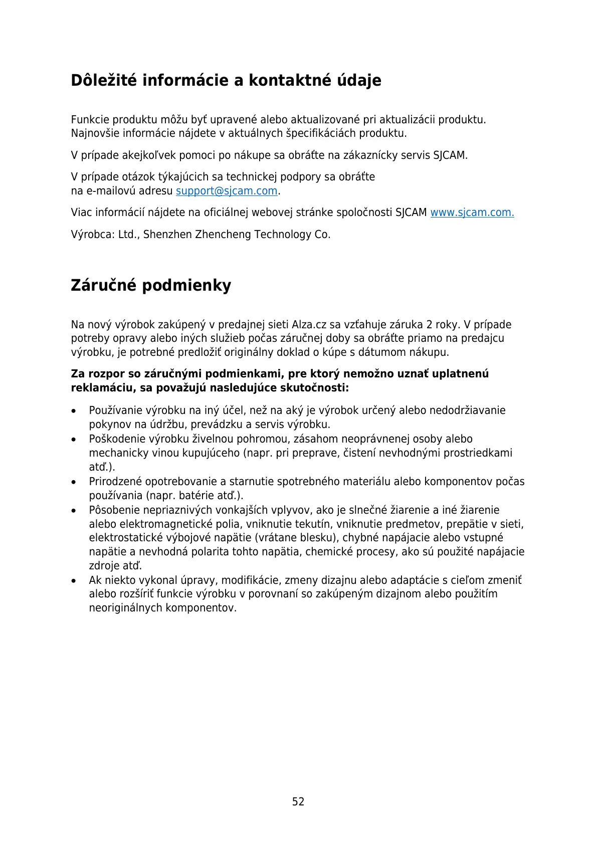 Viac informácií nájdete na oficiálnej webovej stránke spoločnosti SJCAM www.sjcam.com.