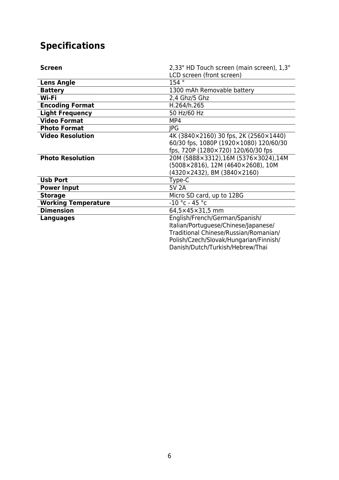 Specifications