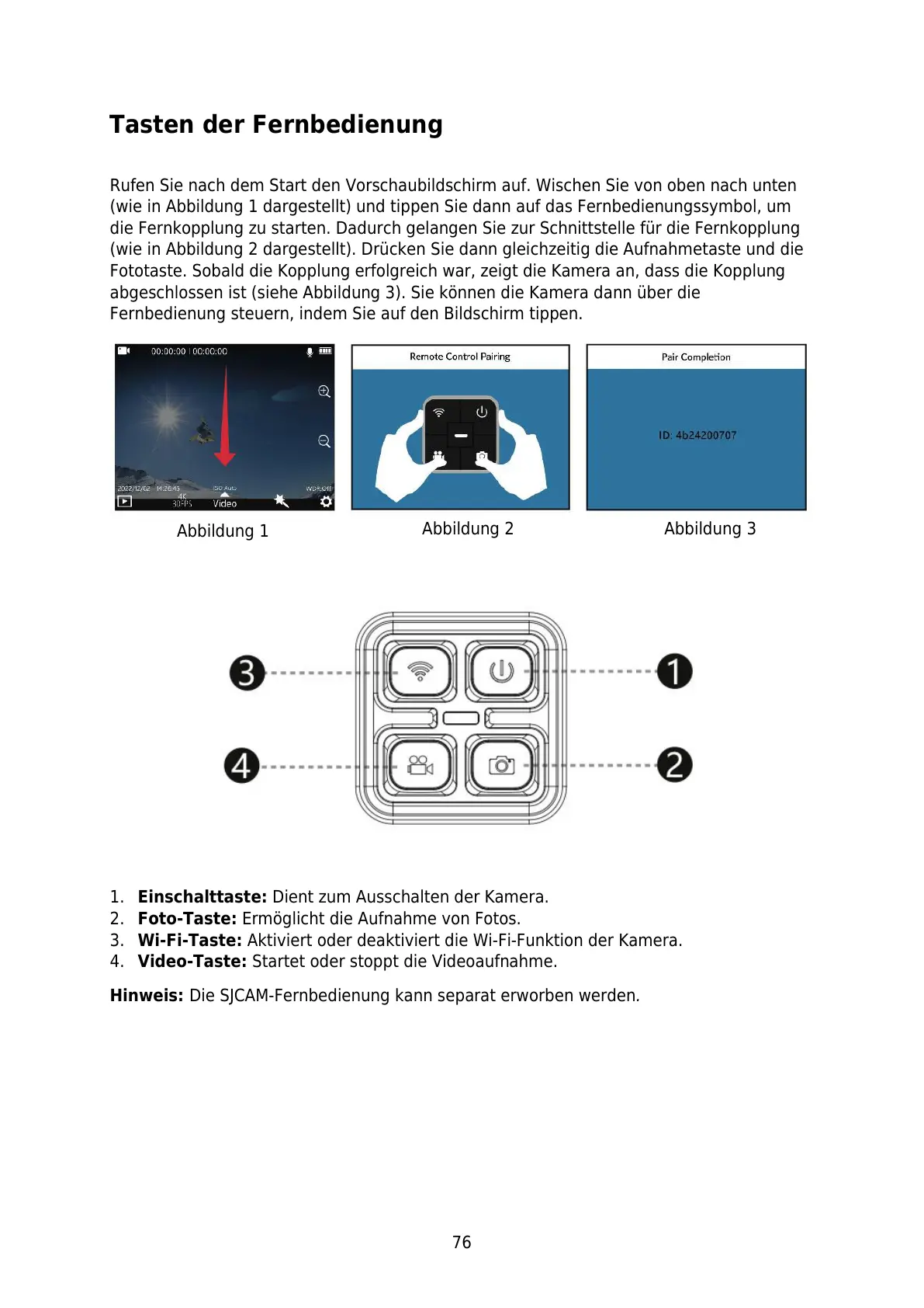 Hinweis: Die SJCAM-Fernbedienung kann separat erworben werden.