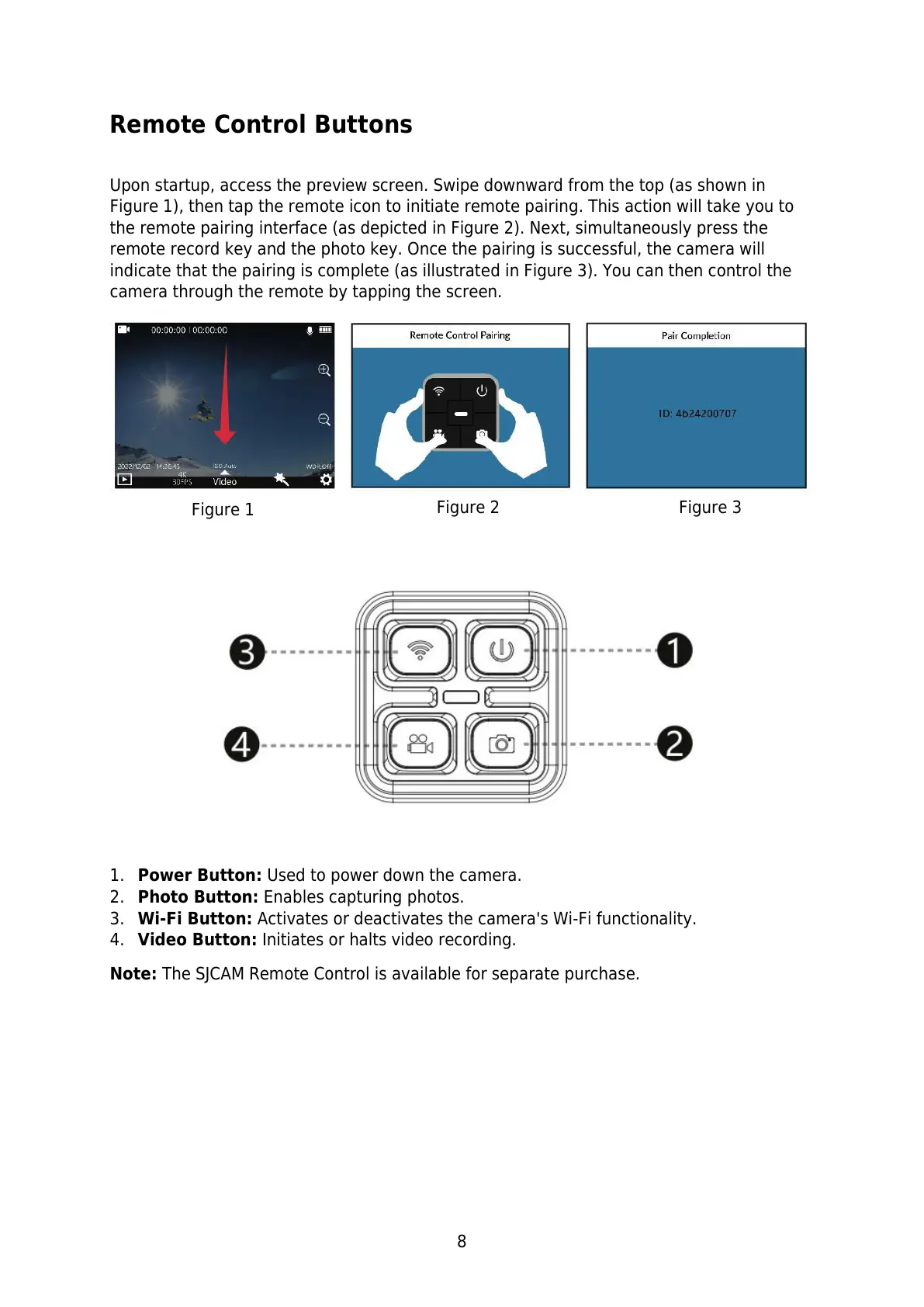 Note: The SJCAM Remote Control is available for separate purchase.