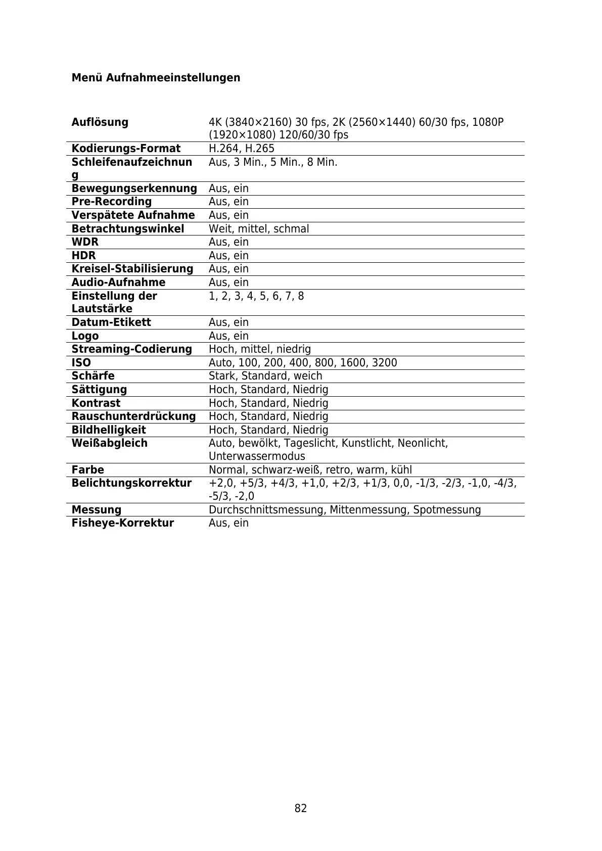 4K (3840×2160) 30 fps, 2K (2560×1440) 60/30 fps, 1080P